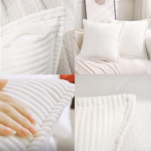 как выглядит Corduroy Throw Pillow Covers Set of 2 Boho Decorative Cream White 16 16 фото