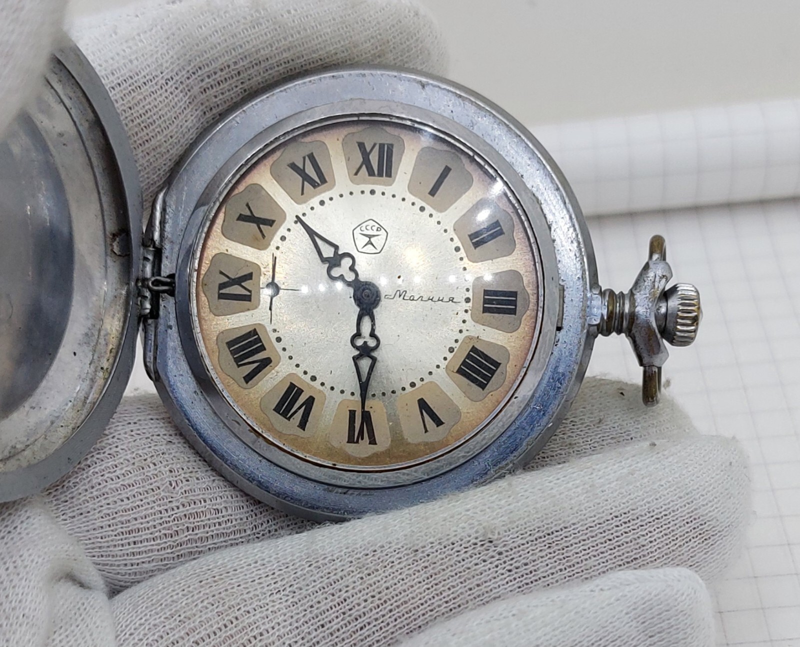 как выглядит Mechanical vintage pocket watch MOLNIYA.Collectible.Made in the USSR. фото