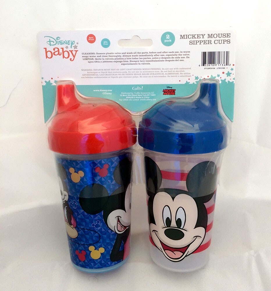 2 PACK Disney Baby Mickey Mouse Toddler Spill Proof Sippy Cups Drink Tumbler New