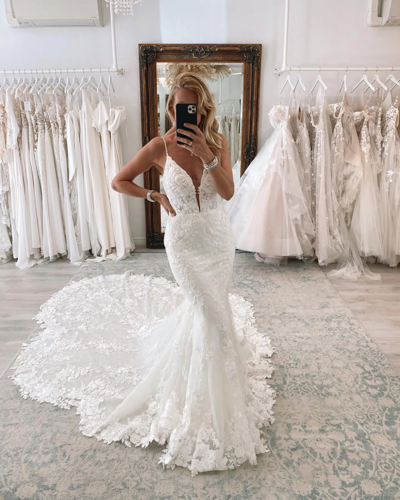 как выглядит Elegant Mermaid Wedding Dresses Spaghetti Lace Sweep Train Backless Bridal Gowns фото