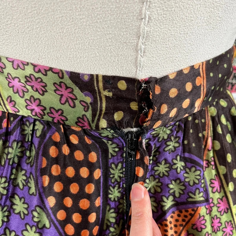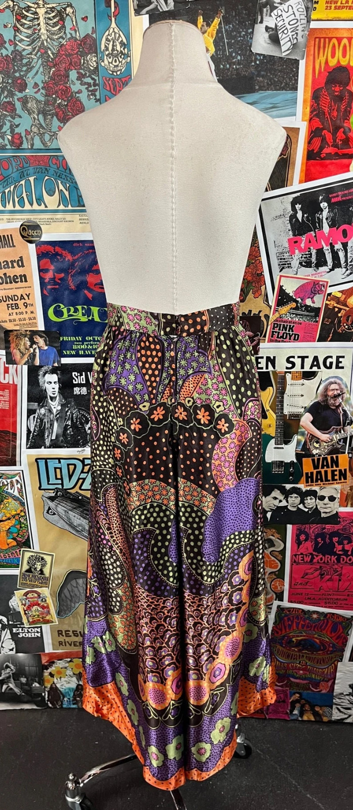 Vtg 60s-70s Groovy Floral Polka Dot High Rise Wide Leg Culottes Pants 24x24