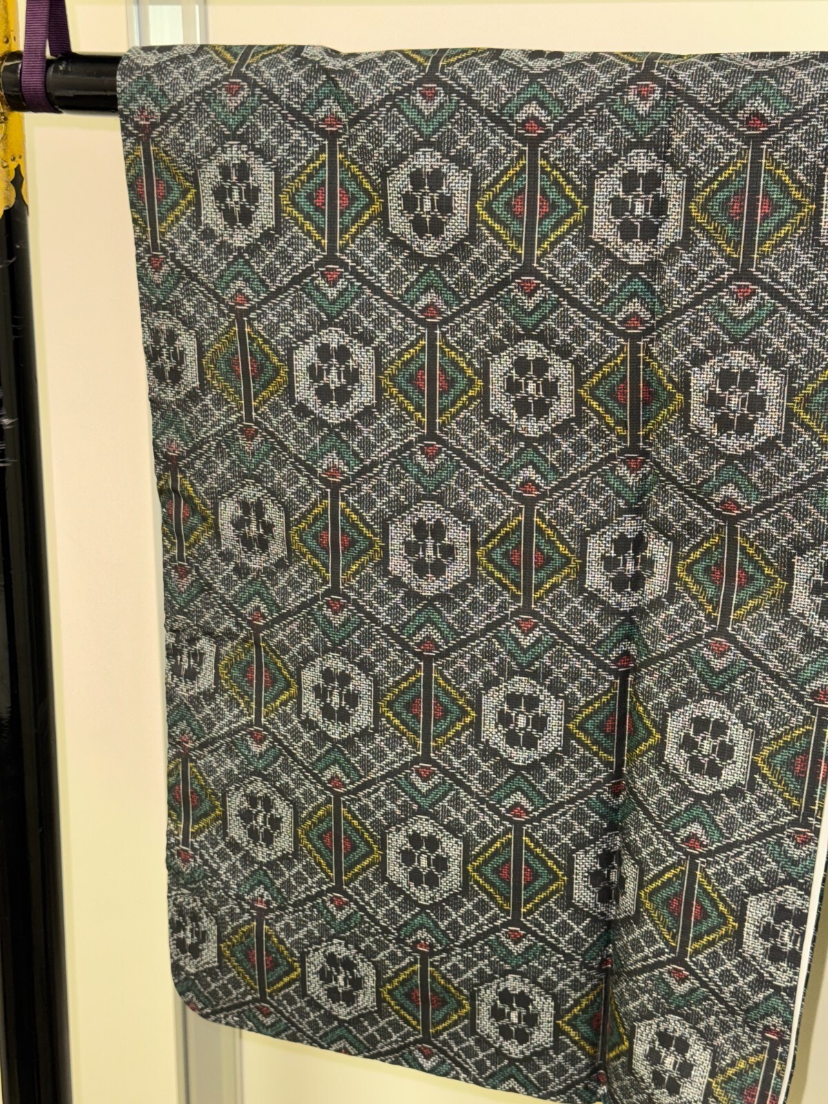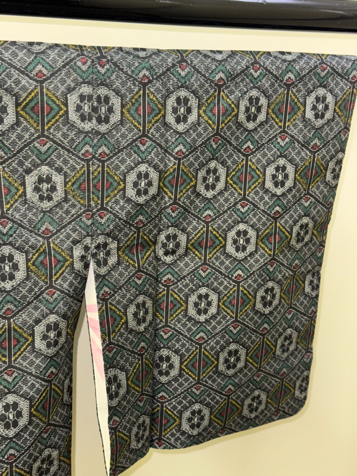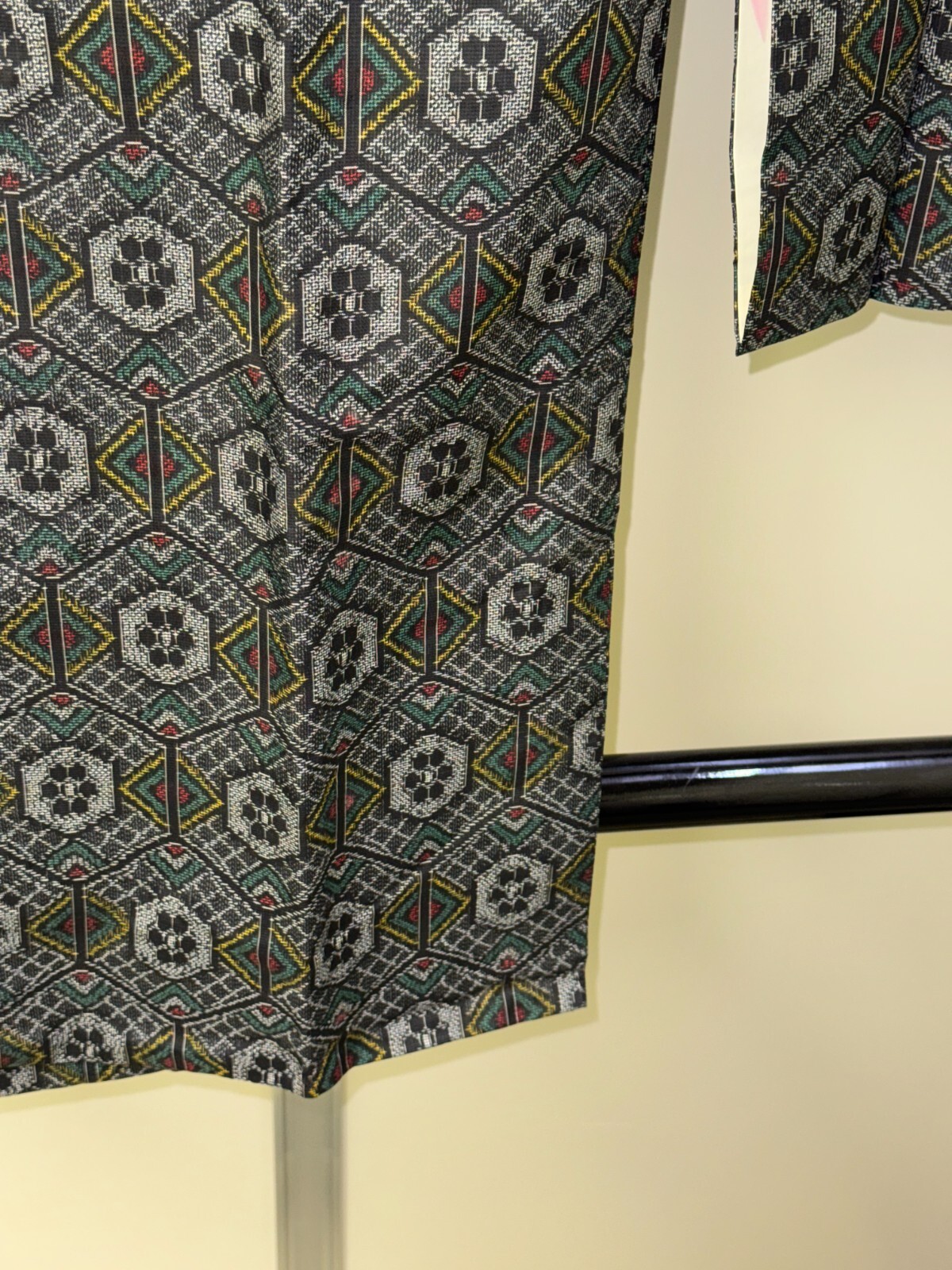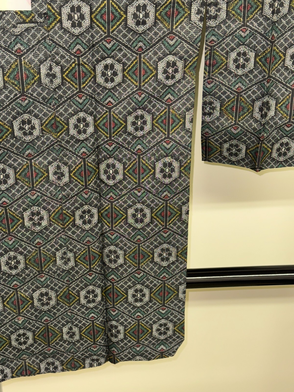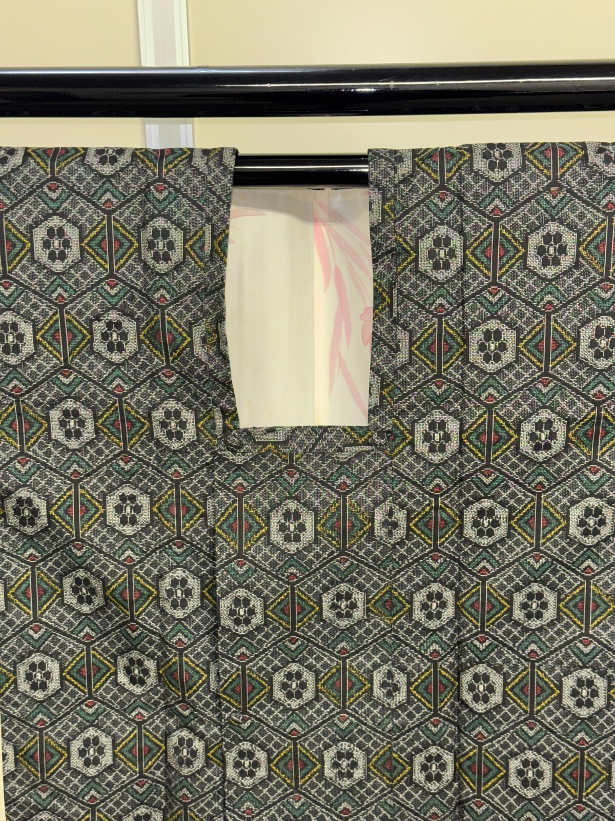 как выглядит Japanese Vintage Kimono Michiyuki coat Jacket Silk black oshima Height 33.85in фото