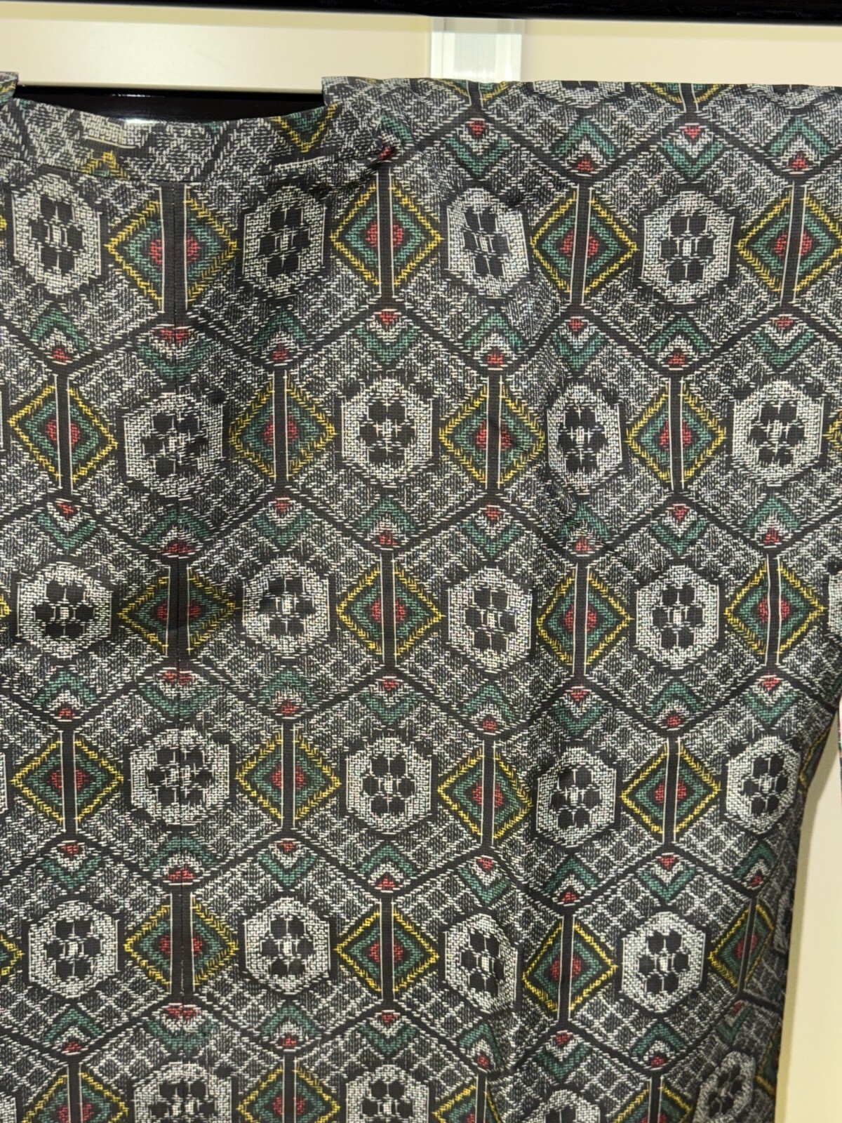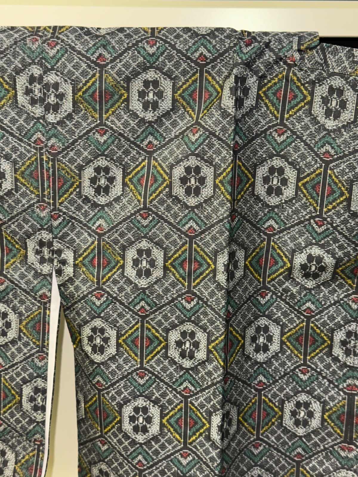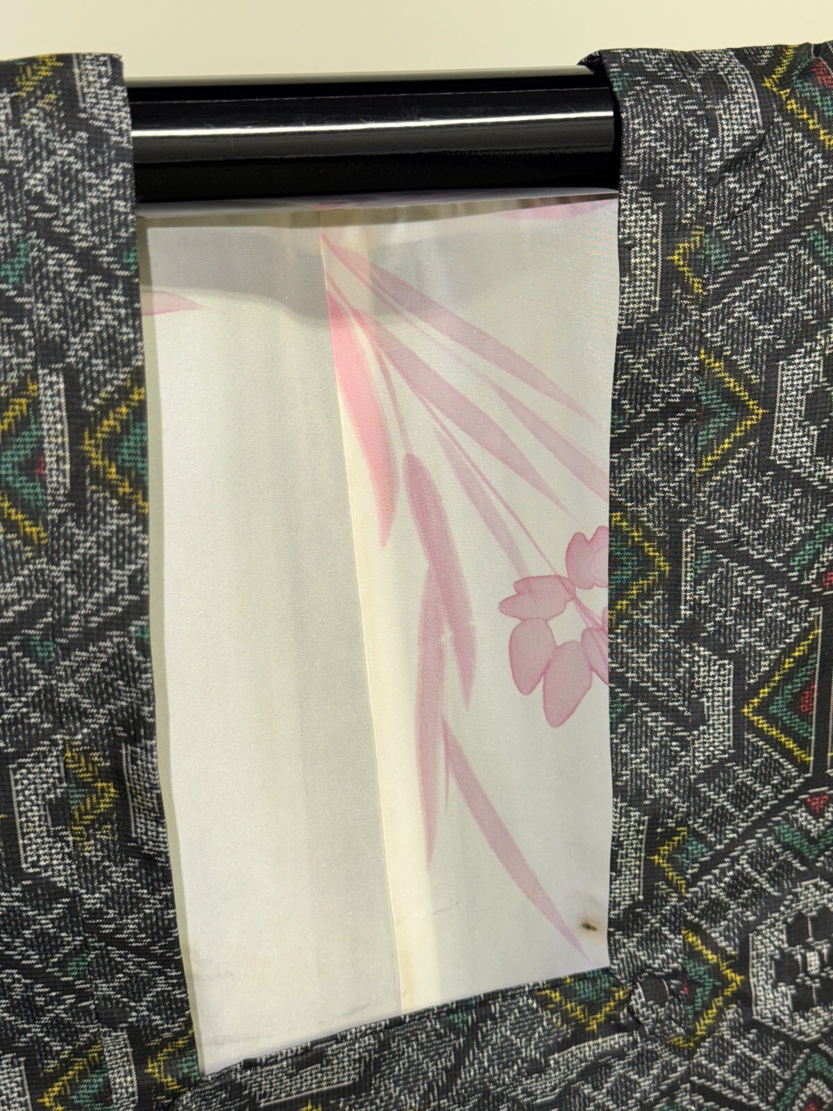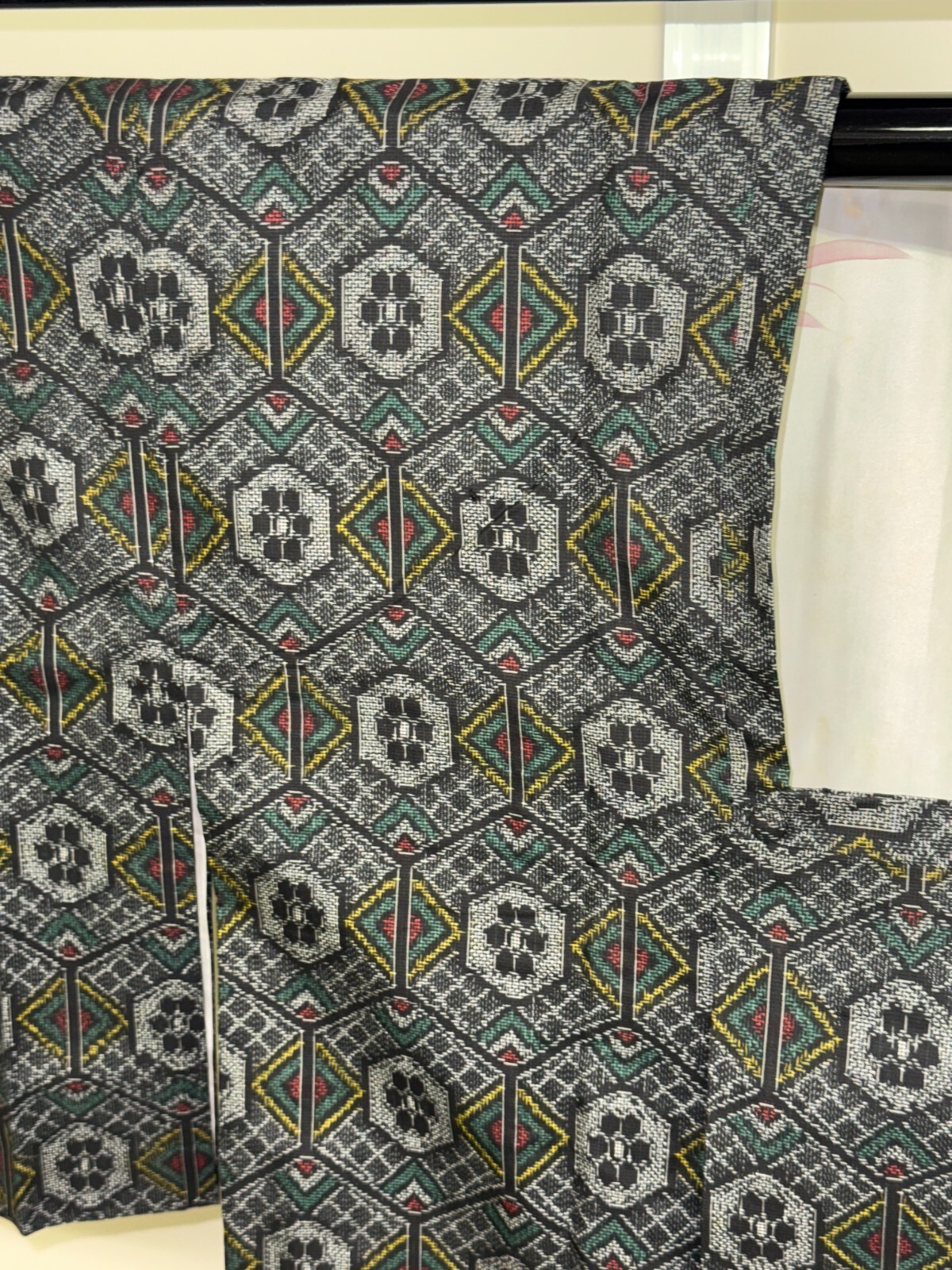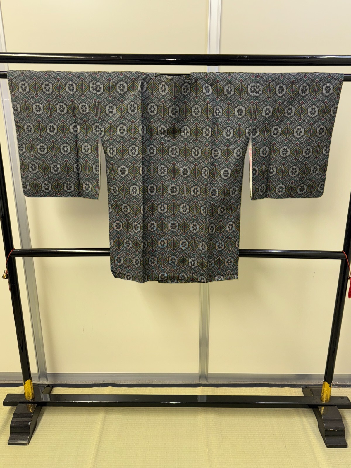как выглядит Japanese Vintage Kimono Michiyuki coat Jacket Silk black oshima Height 33.85in фото
