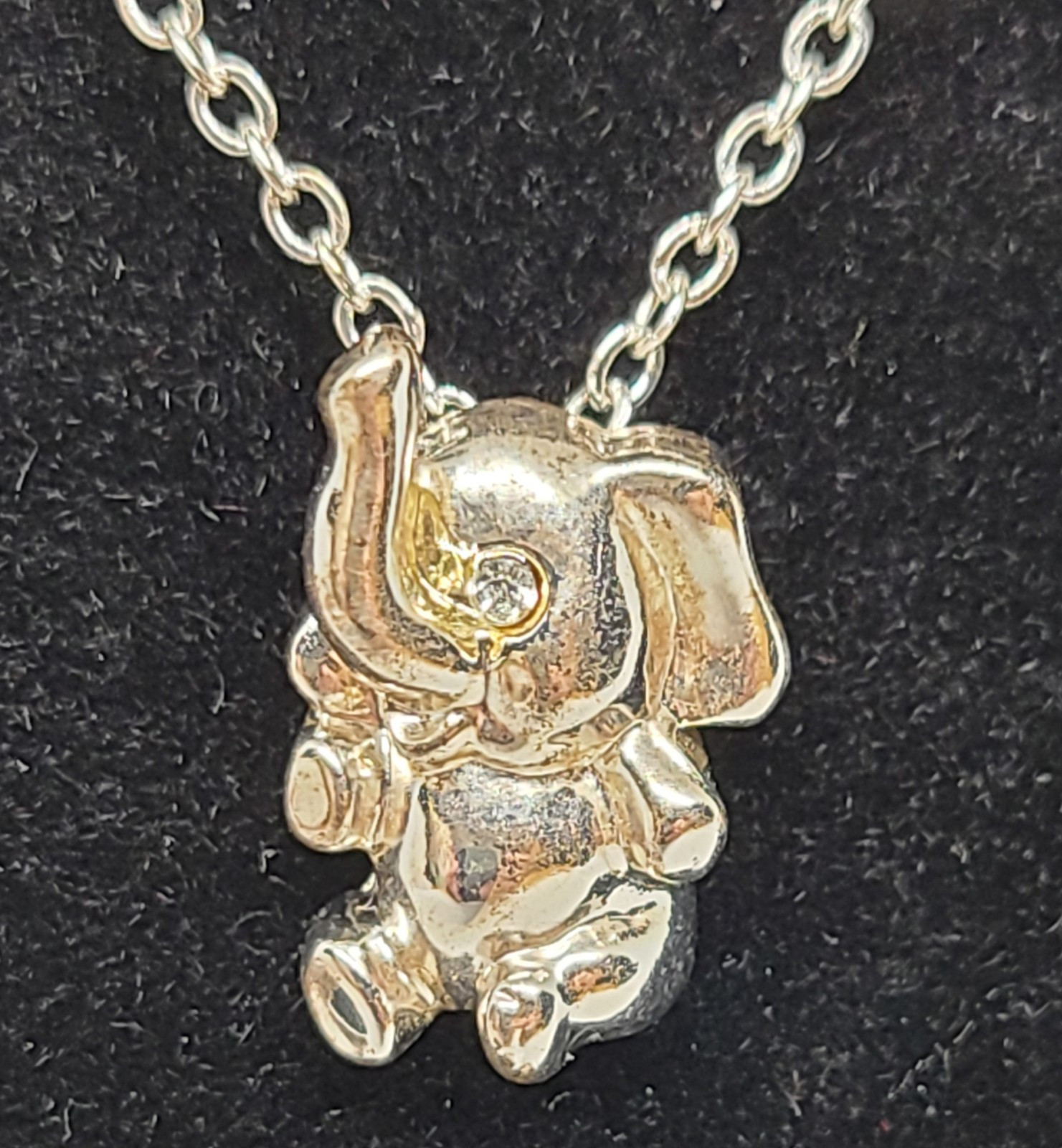 Child Silver Elephant Necklace Crystal Eye N1