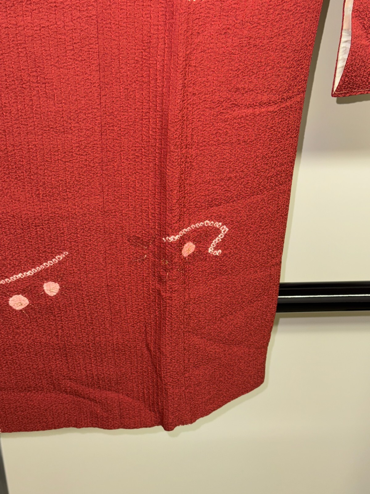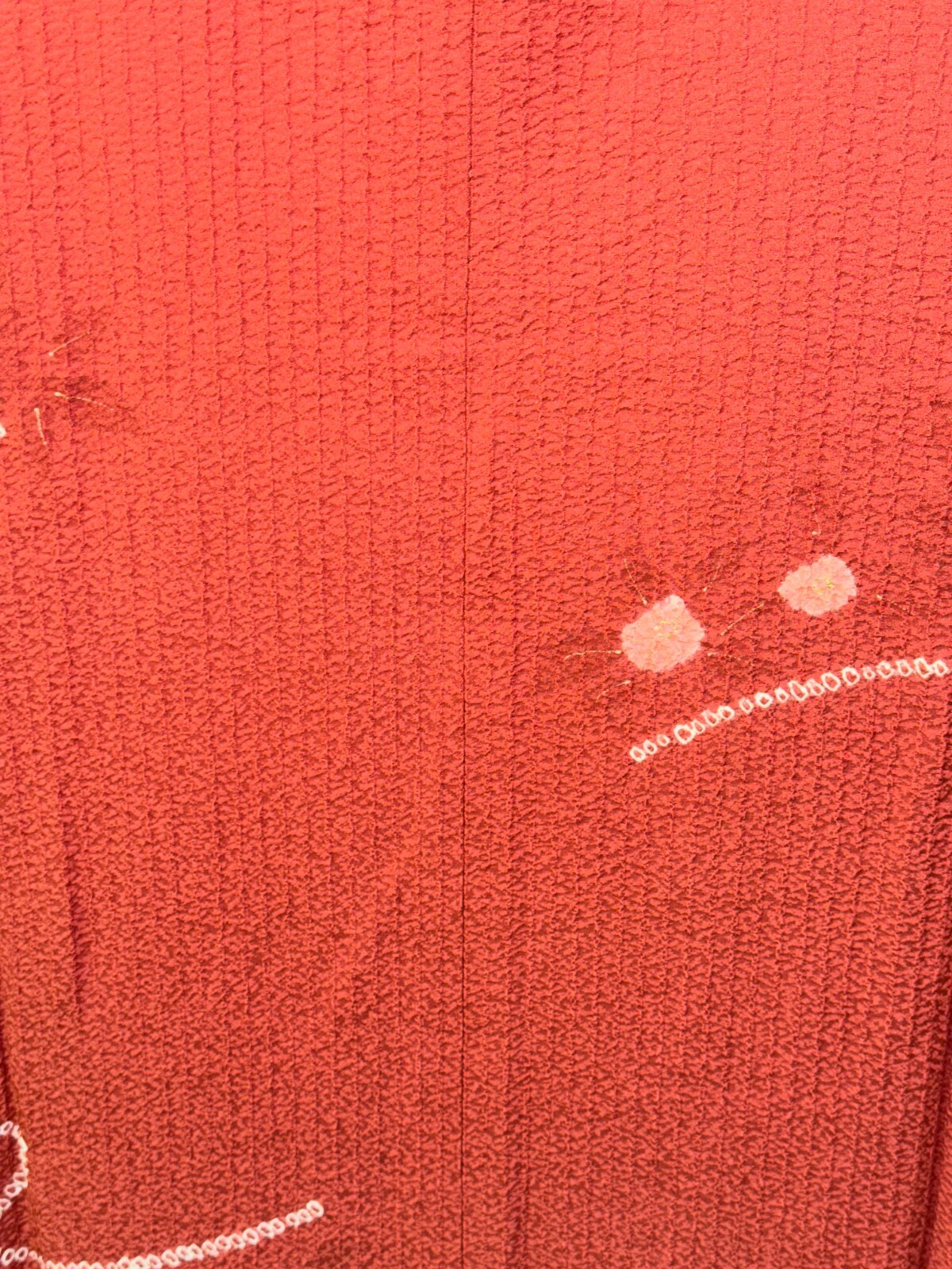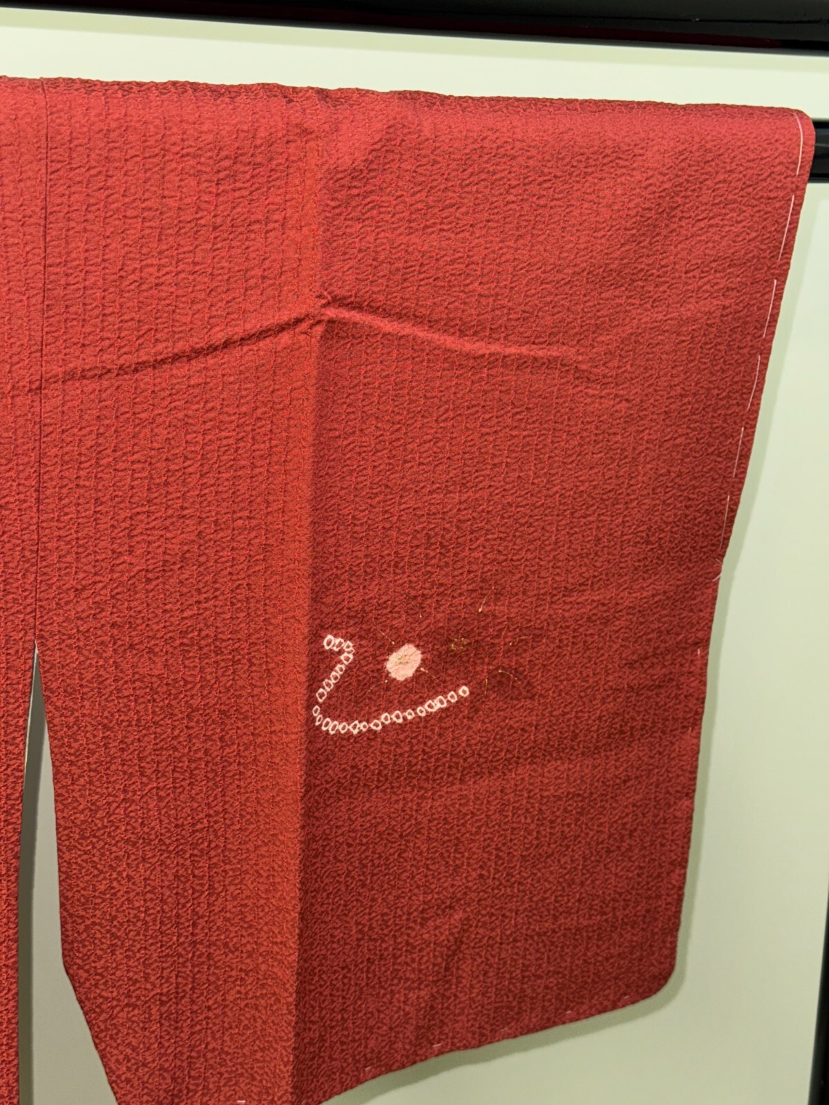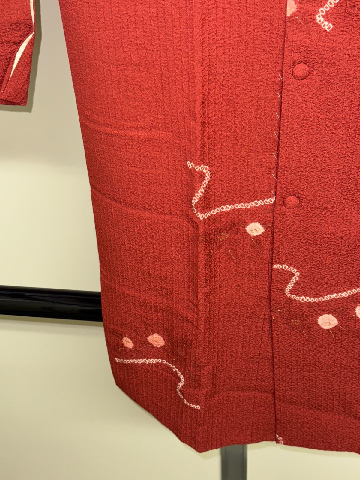 Japanese Vintage Kimono Michiyuki coat Jacket Silk Red Expensive Height 34.64in