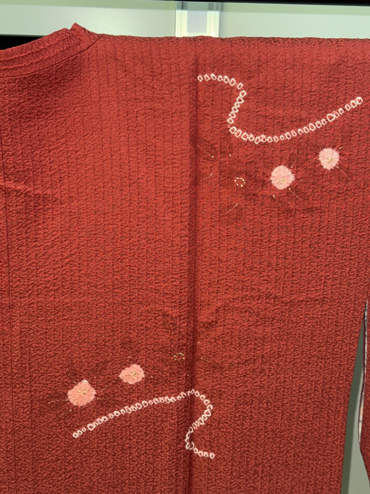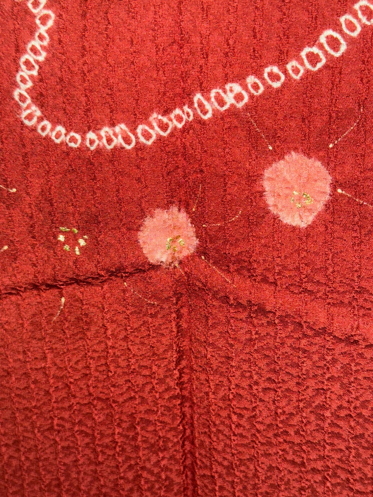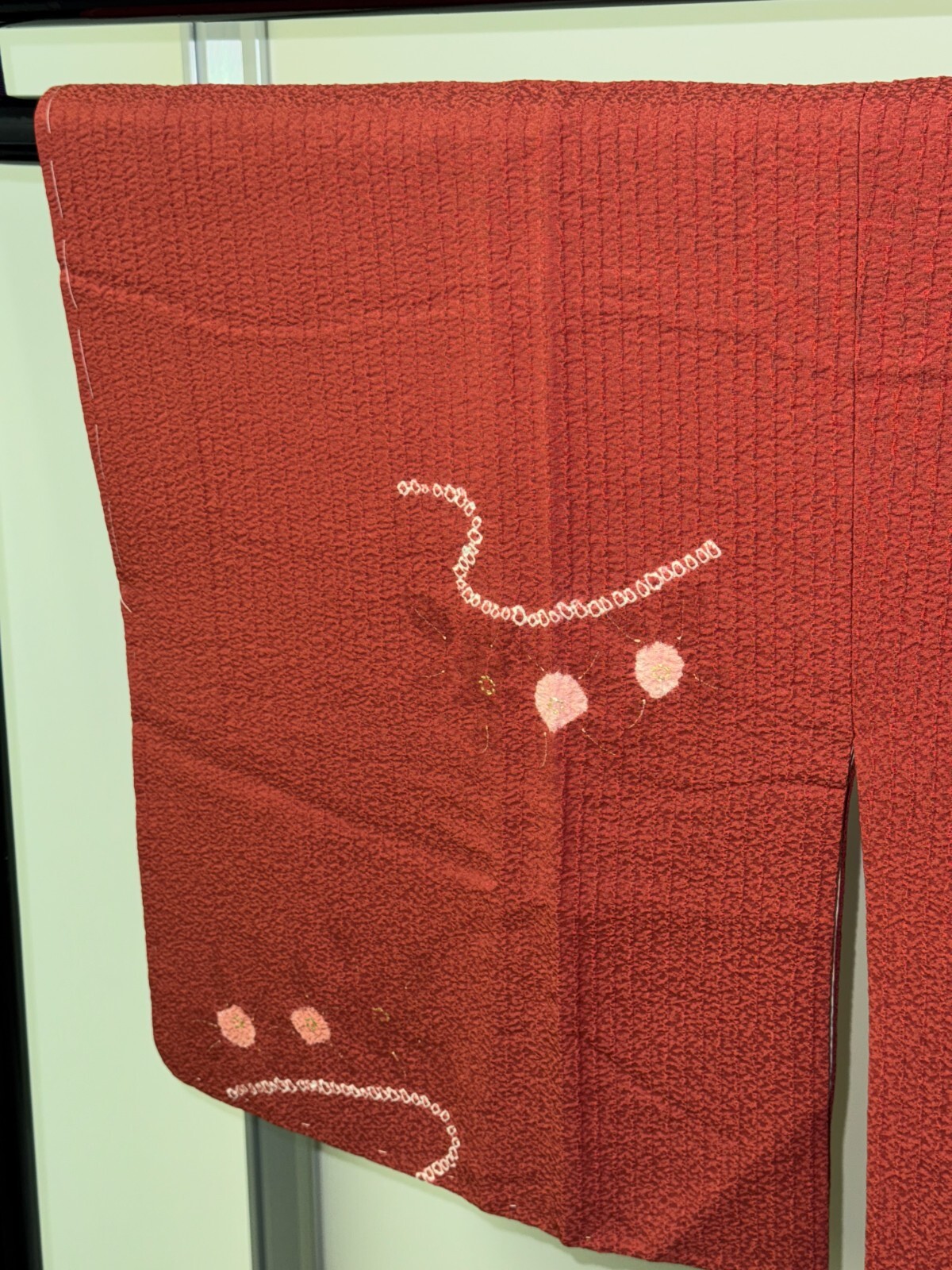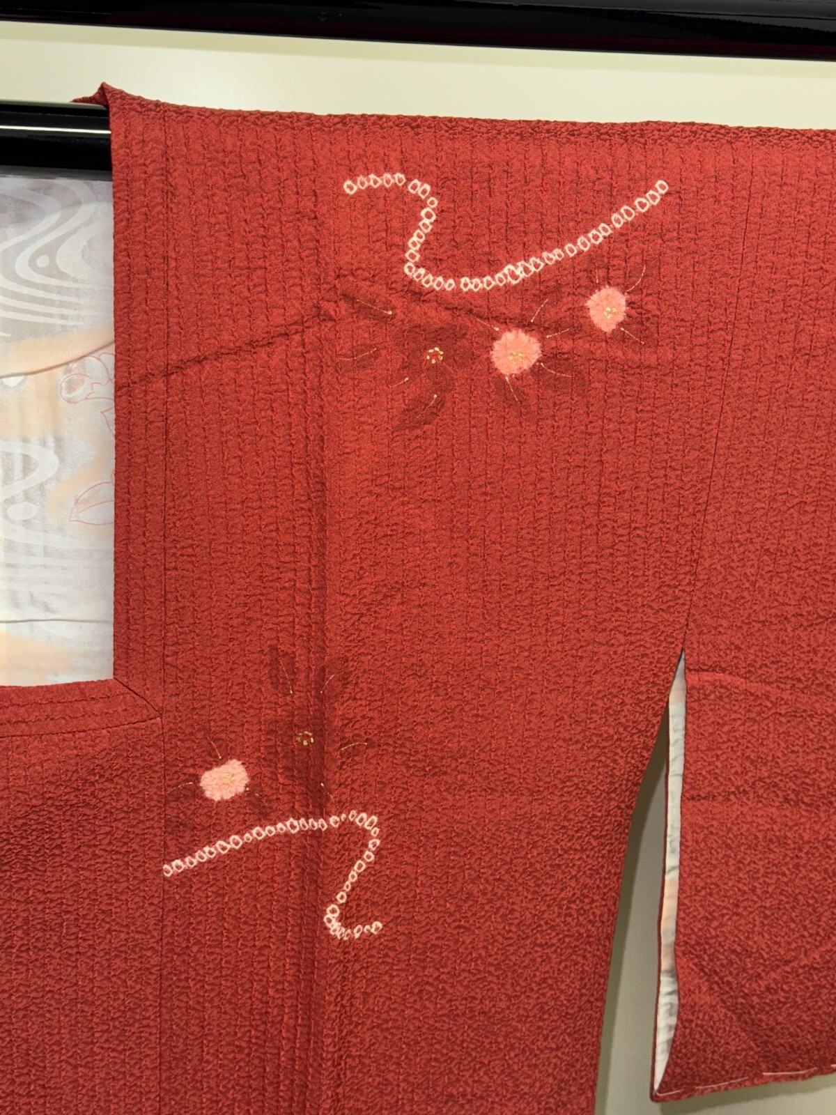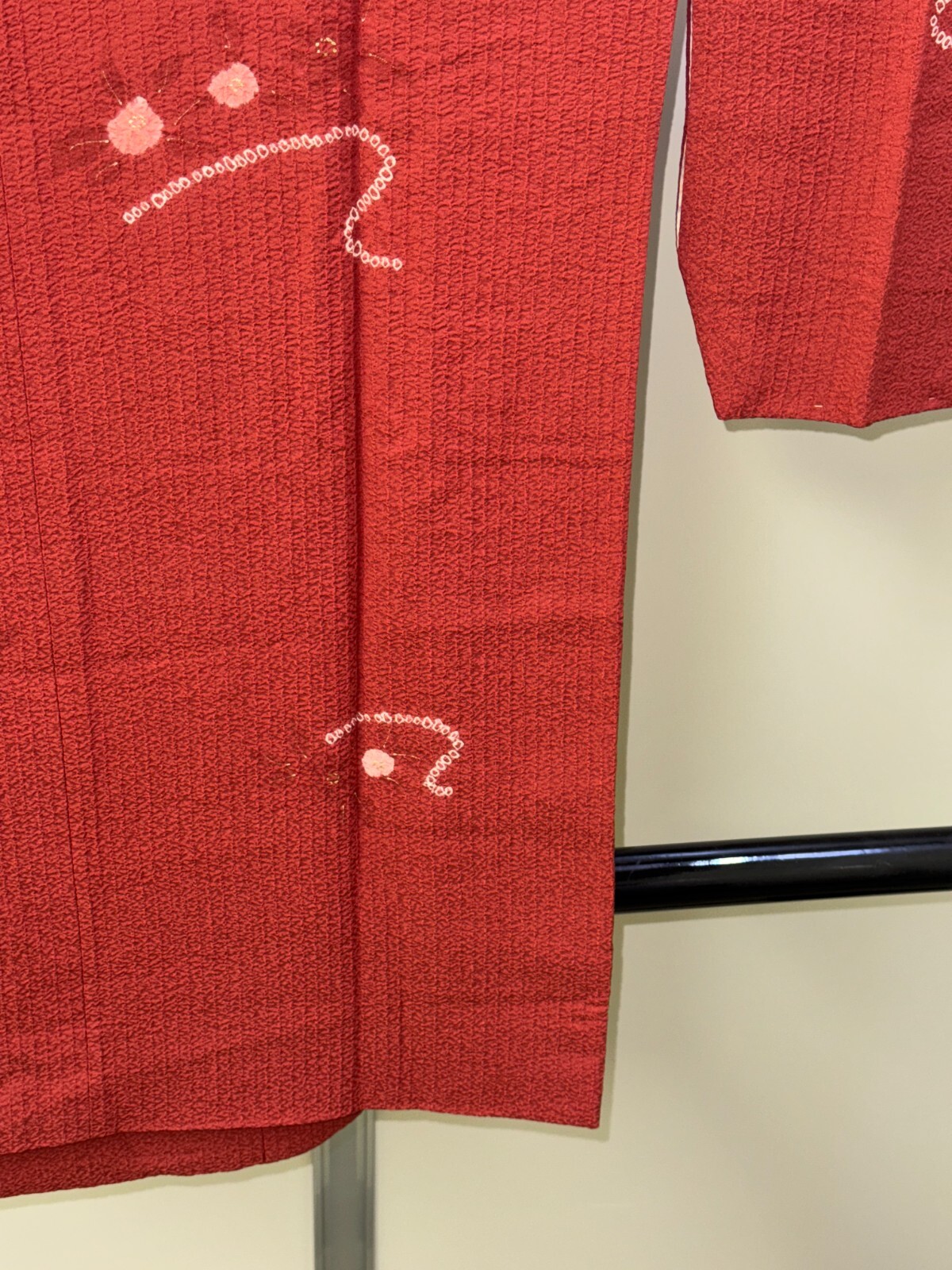 Japanese Vintage Kimono Michiyuki coat Jacket Silk Red Expensive Height 34.64in