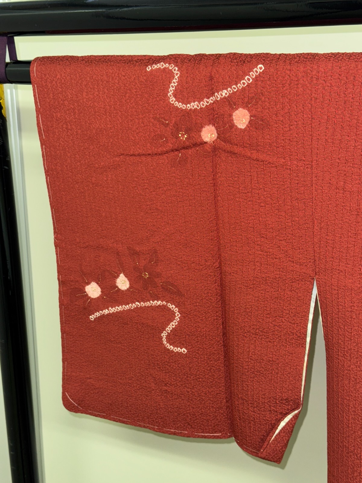 как выглядит Japanese Vintage Kimono Michiyuki coat Jacket Silk Red Expensive Height 34.64in фото