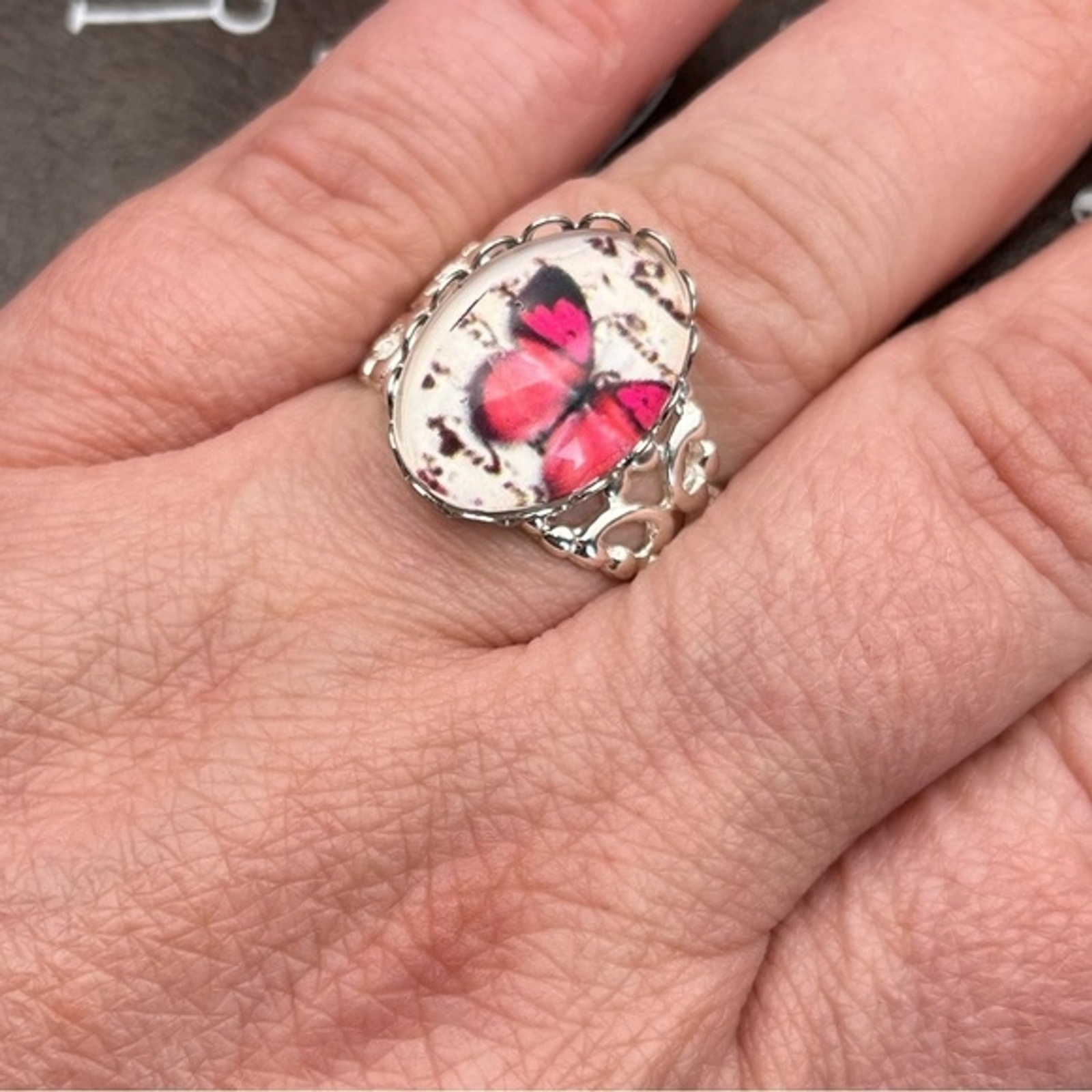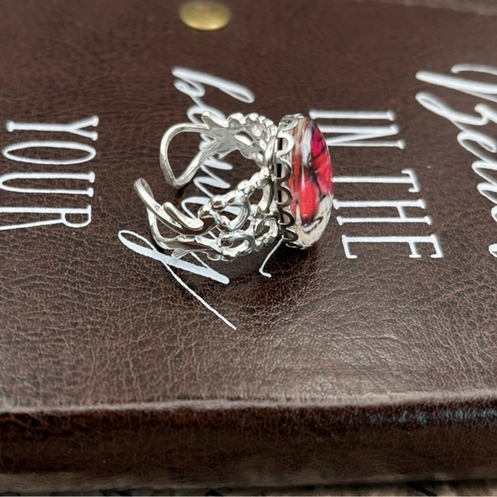 как выглядит Red Monarch Butterfly Glass Stainless Steel Filigree Ring фото