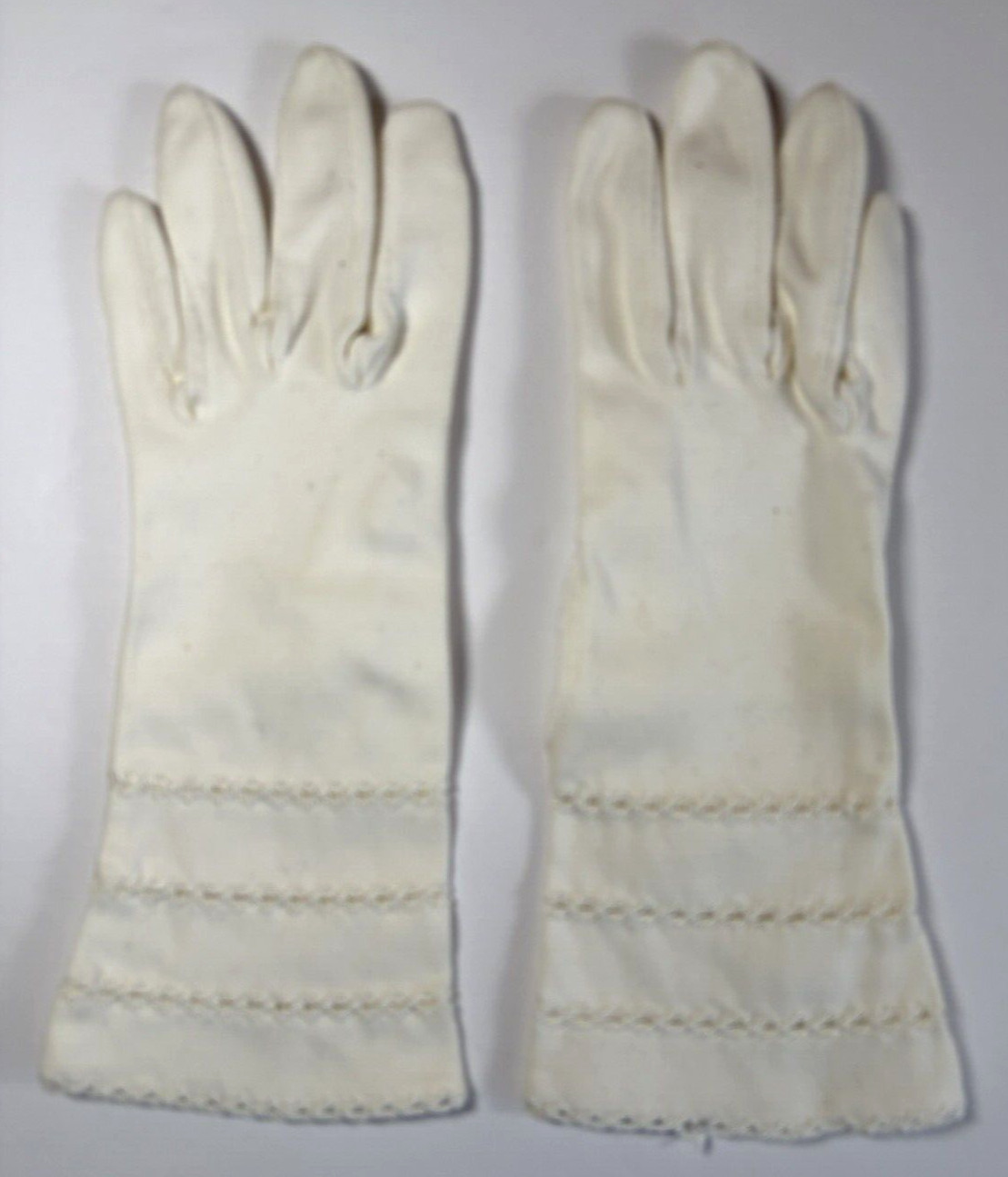 Ladies Vintage Formal Gloves White w fancy Stitching Excellent Condition