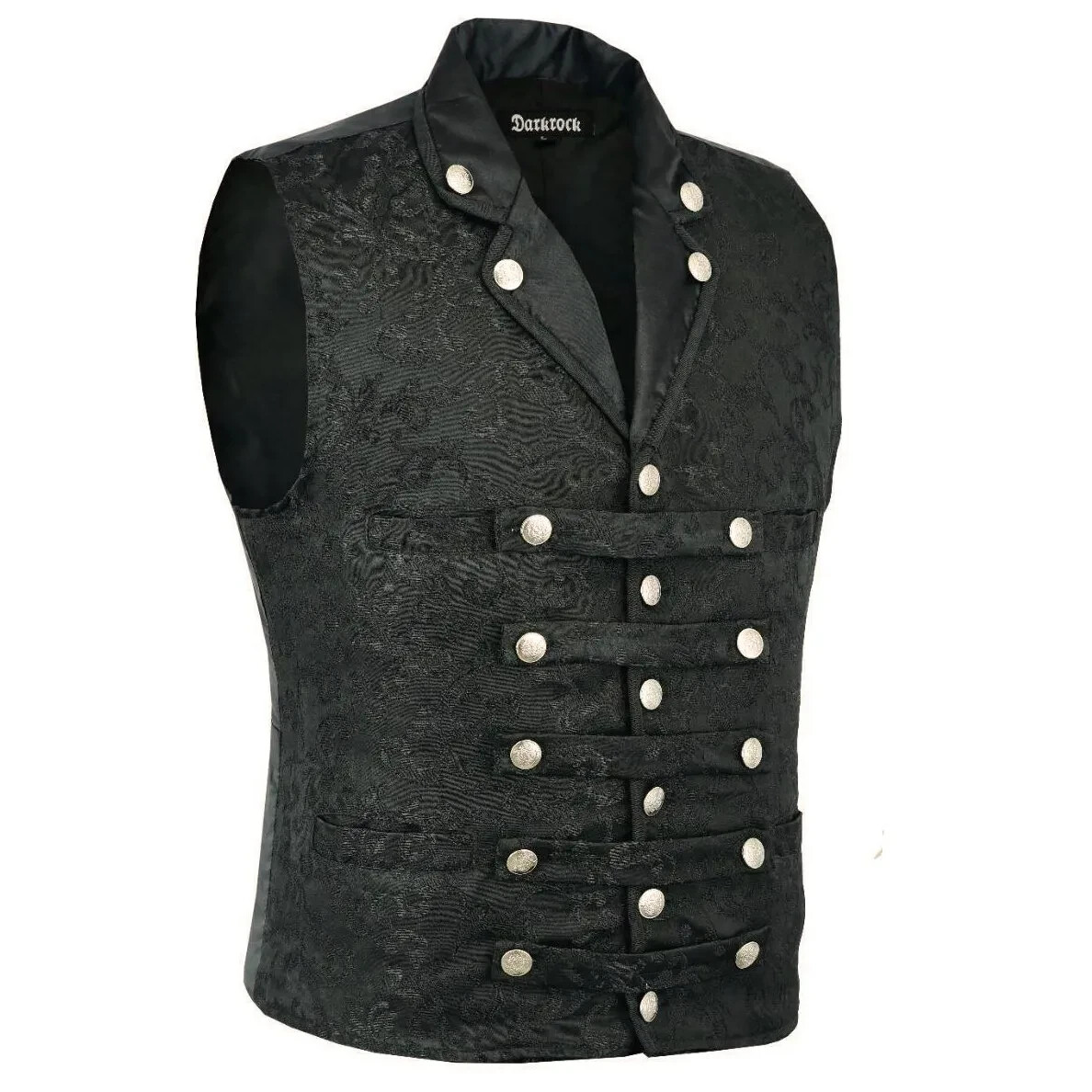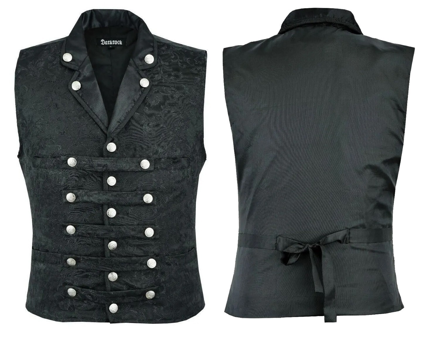 Mens Victorian Steampunk Captain Black Brocade Waistcoat Gentleman Vest