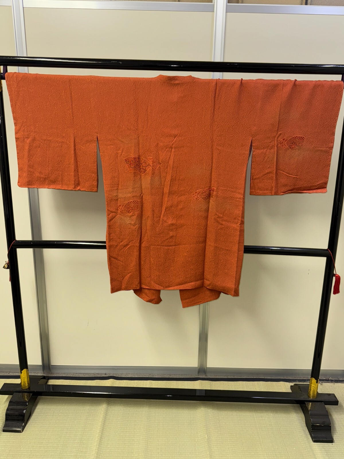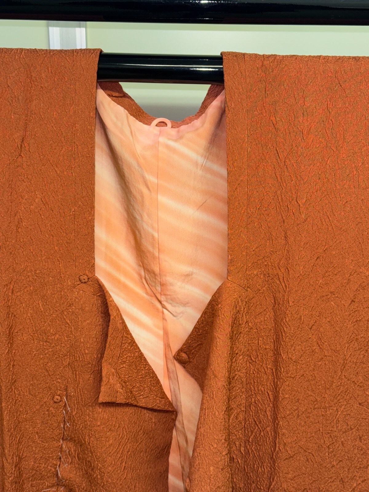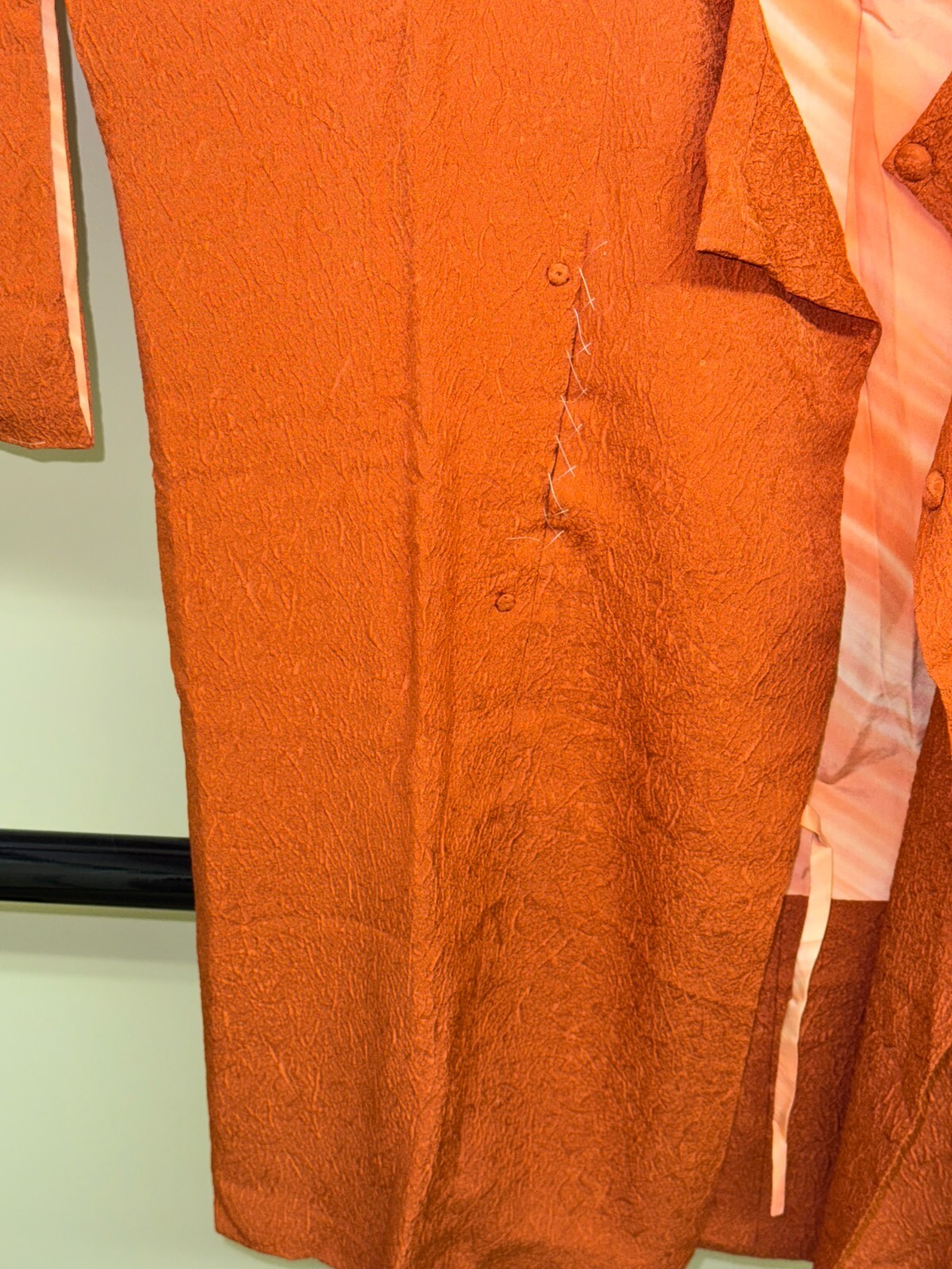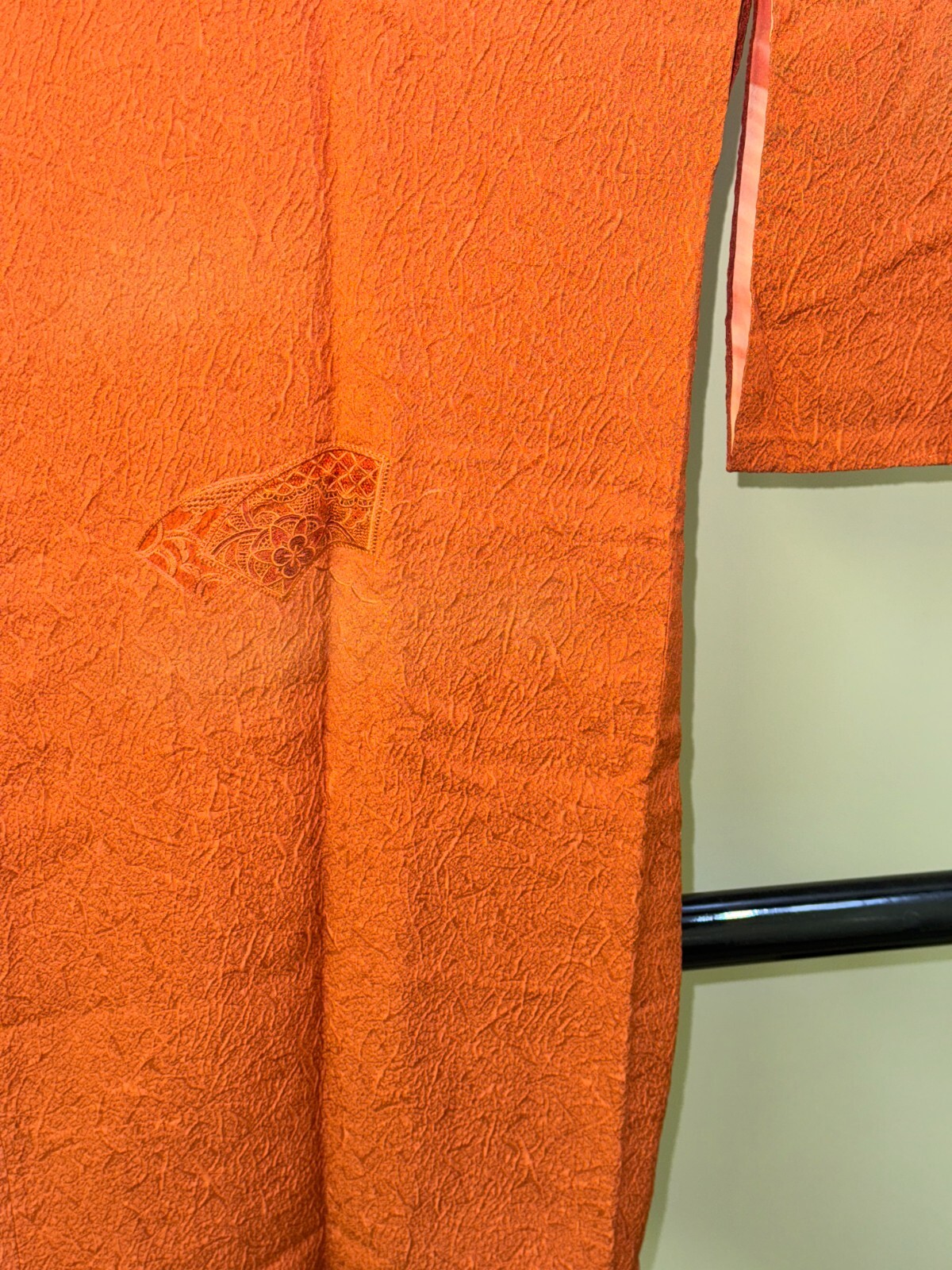 как выглядит Japanese Vintage Kimono Michiyuki coat Jacket Silk orange Expensive Height 37in фото