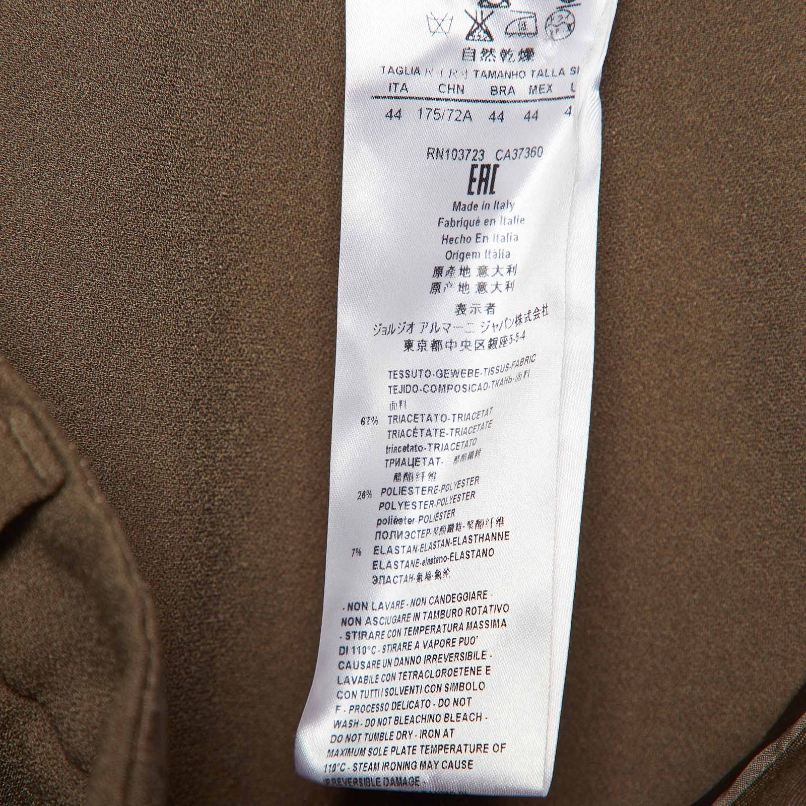 Composition: 67% Triacetate, 26% Polyester, 7% Elastane