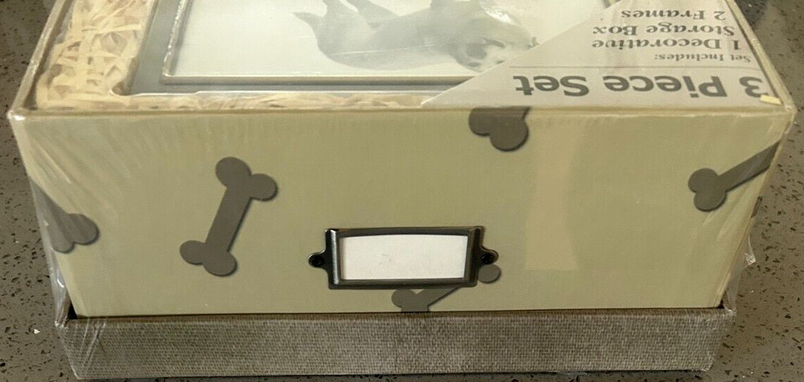 3 PC Set Dog Best Friends Picture Frames Metal w/Photo Storage Box 2 Frames OB