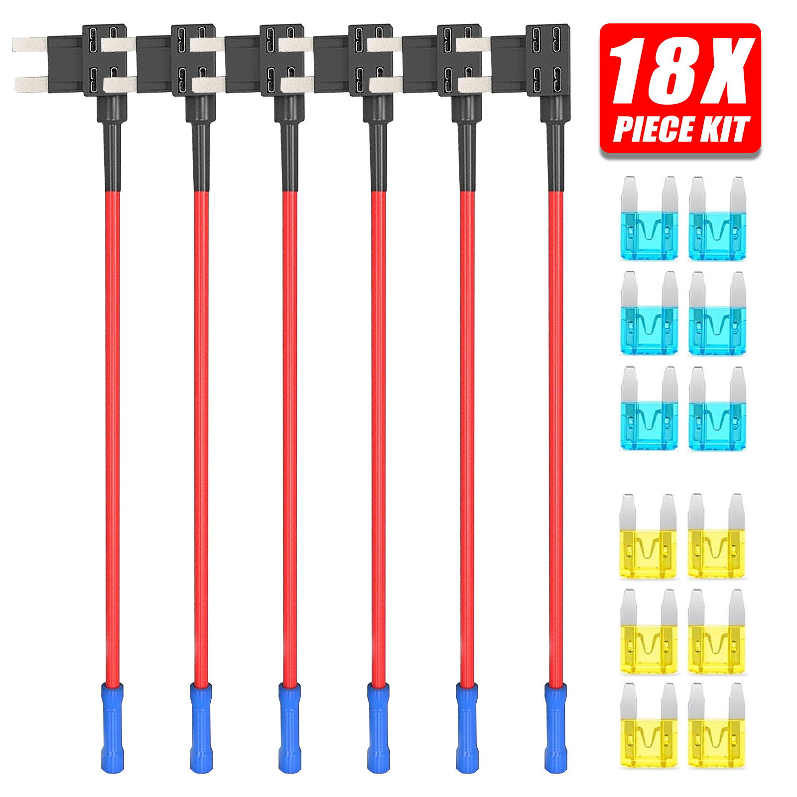18PCS Fuse Tap Adapter Kit 12V 15 Amp 20Amp Car Add A Circuit Mini ATM APM Blade