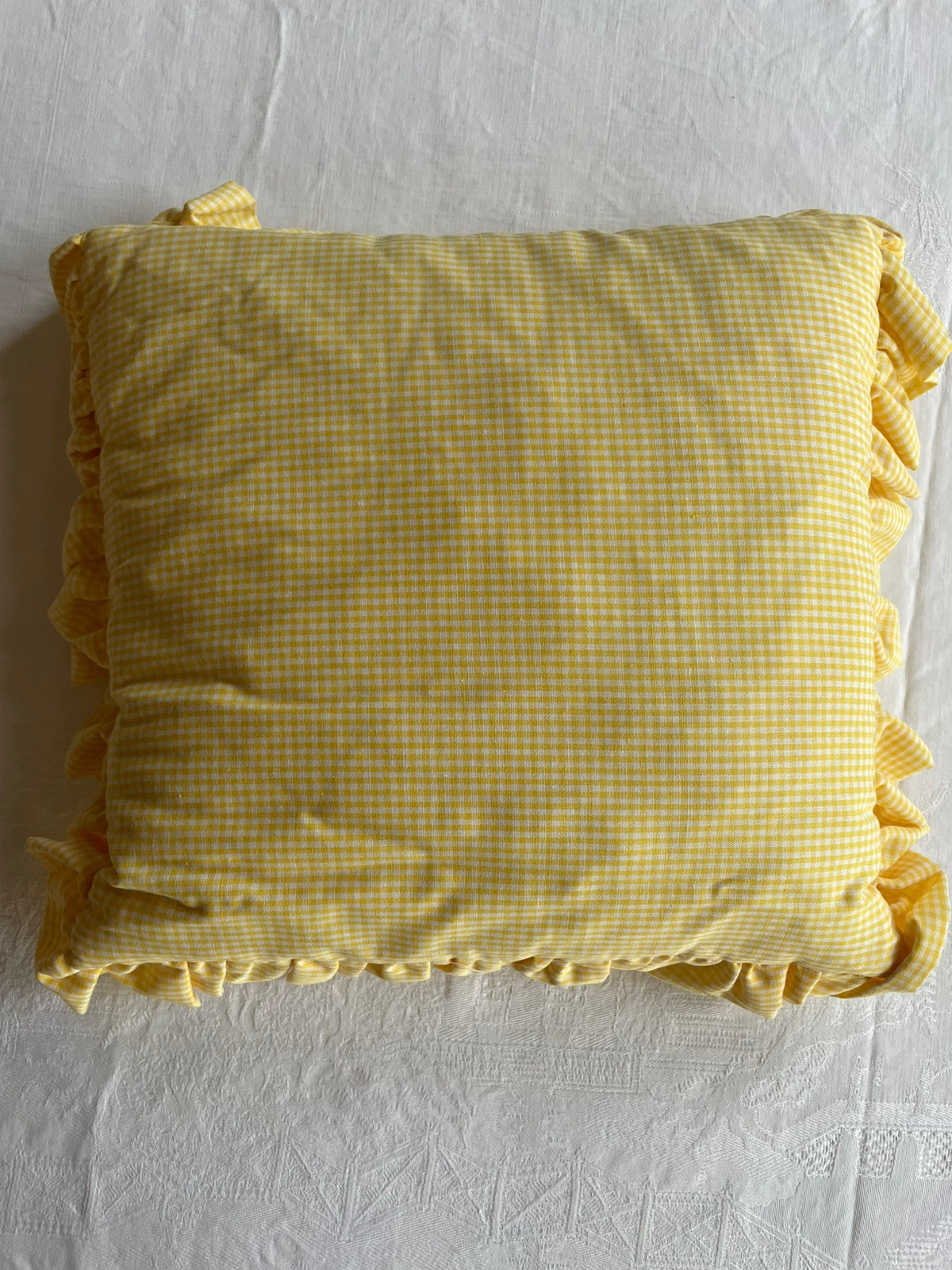 Square Cross Stitch Pillow Baby Toys Yellow/White Gingham Ruffle NWOT 14