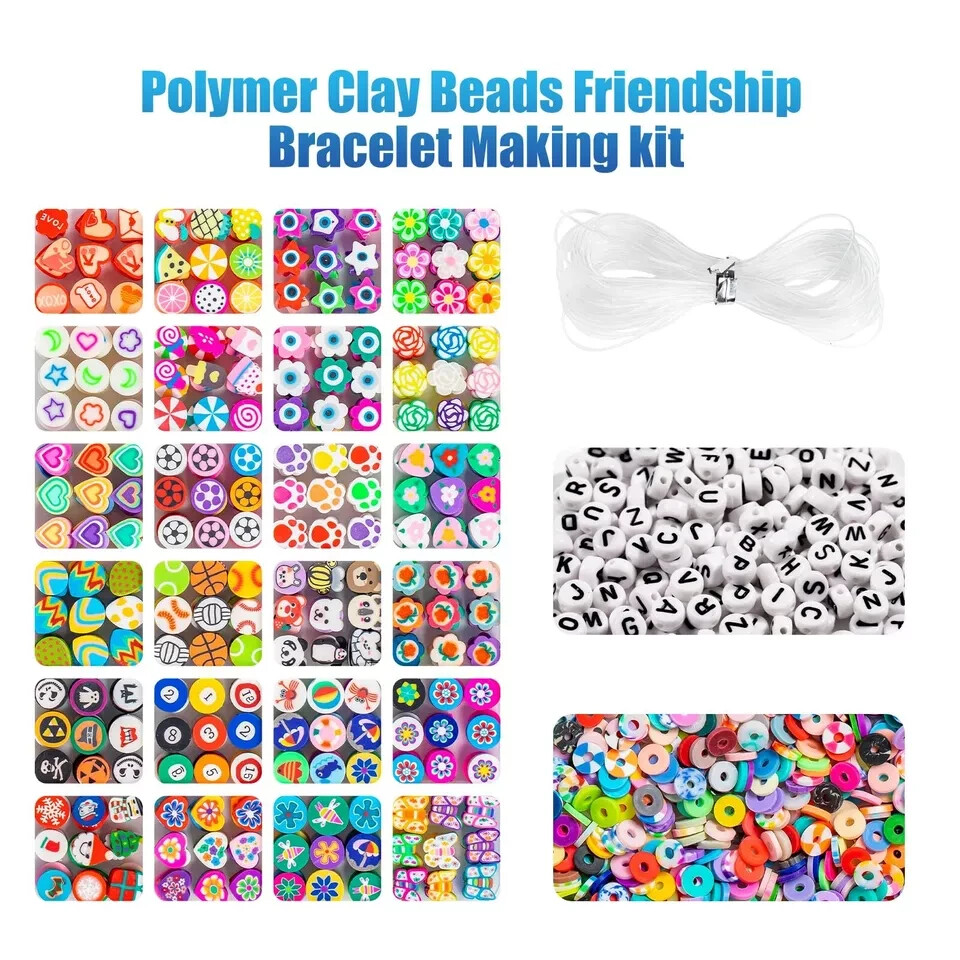 1000Pcs Polymer Clay Beads Bracelets Making kit, 24 Style Cute Fun Beads Frie...