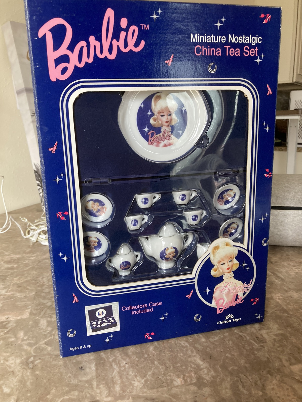 как выглядит Barbie Miniature Nostalgic China Tea Set Chilton Toys NEW W/Collectors Case 1996 фото