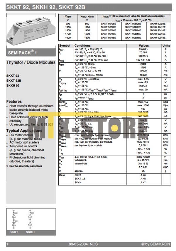 Manufacturer Part Number: SKKT92/08E