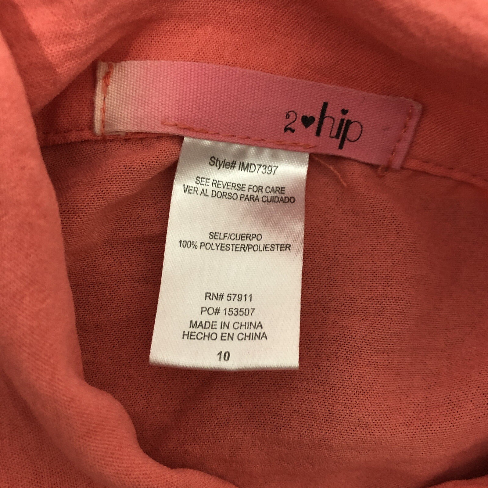 2 Hip Girls Salmon Short Sleeve Button Up Jumpsuit With Pockets Sz 10