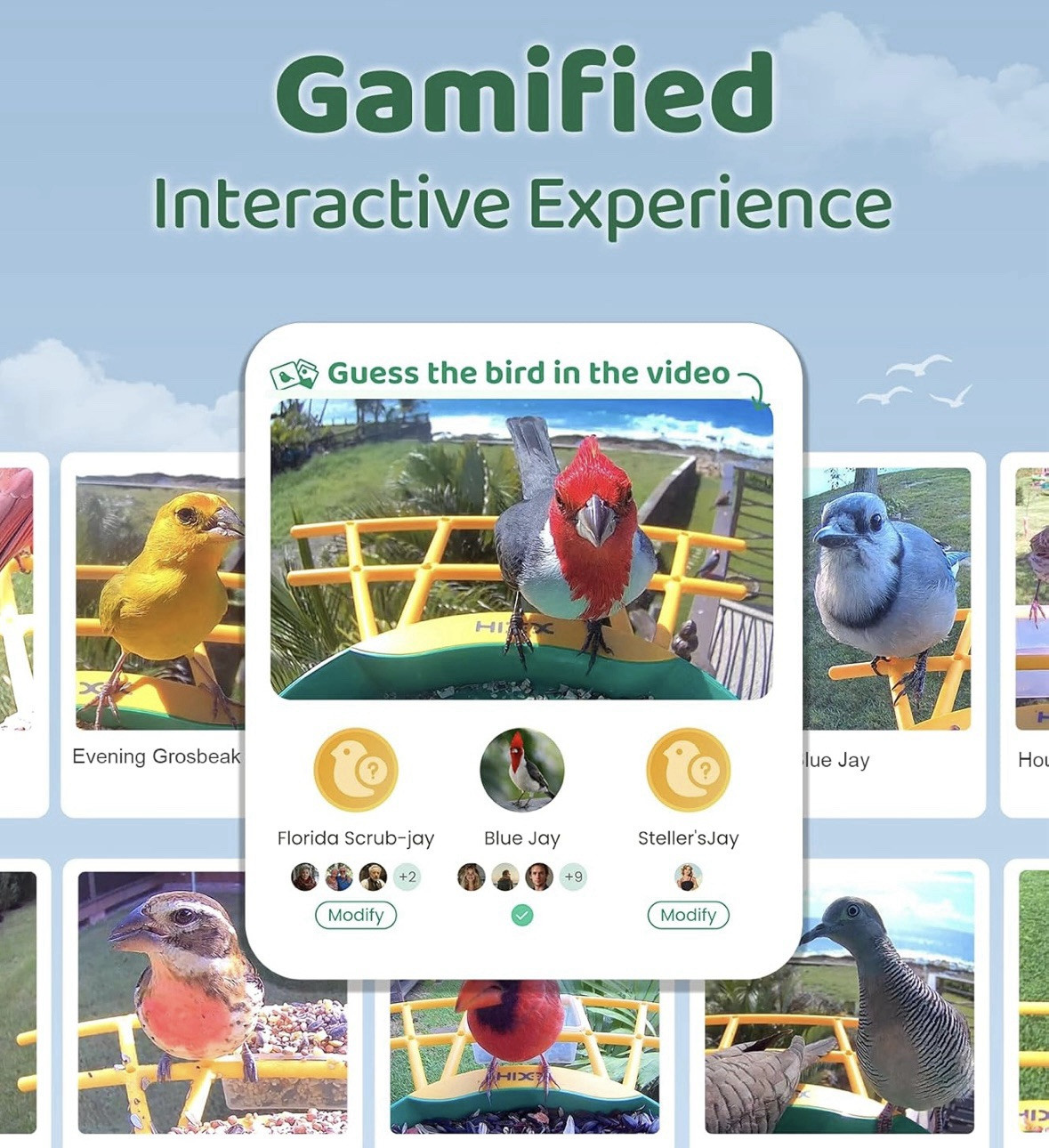 HIXX Smart Bird Feeder with Camera, Birdwatching Camera AI Identify Bird Solar