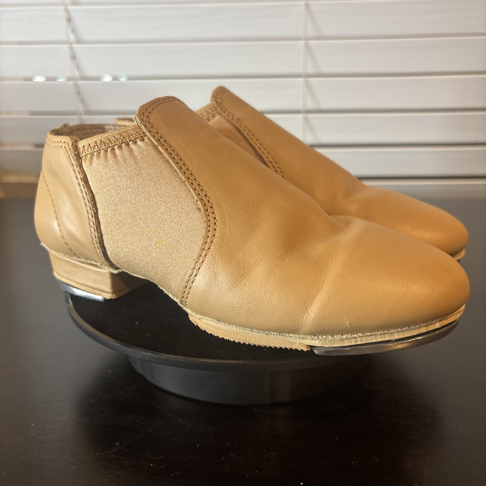 как выглядит Revolution Dancewear Slip On Tap Shoes Tan Beige Leather Size 4.5 фото