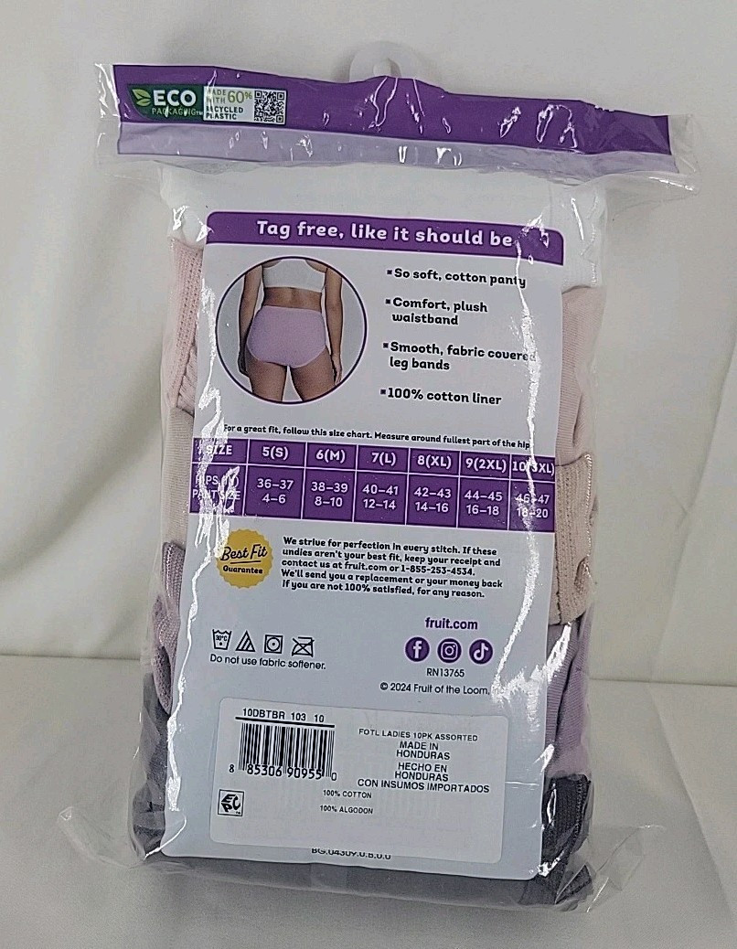 Fruit Of The Loom Women's 100 Cotton Briefs Multicolor 10 Pack Size 10/3XL