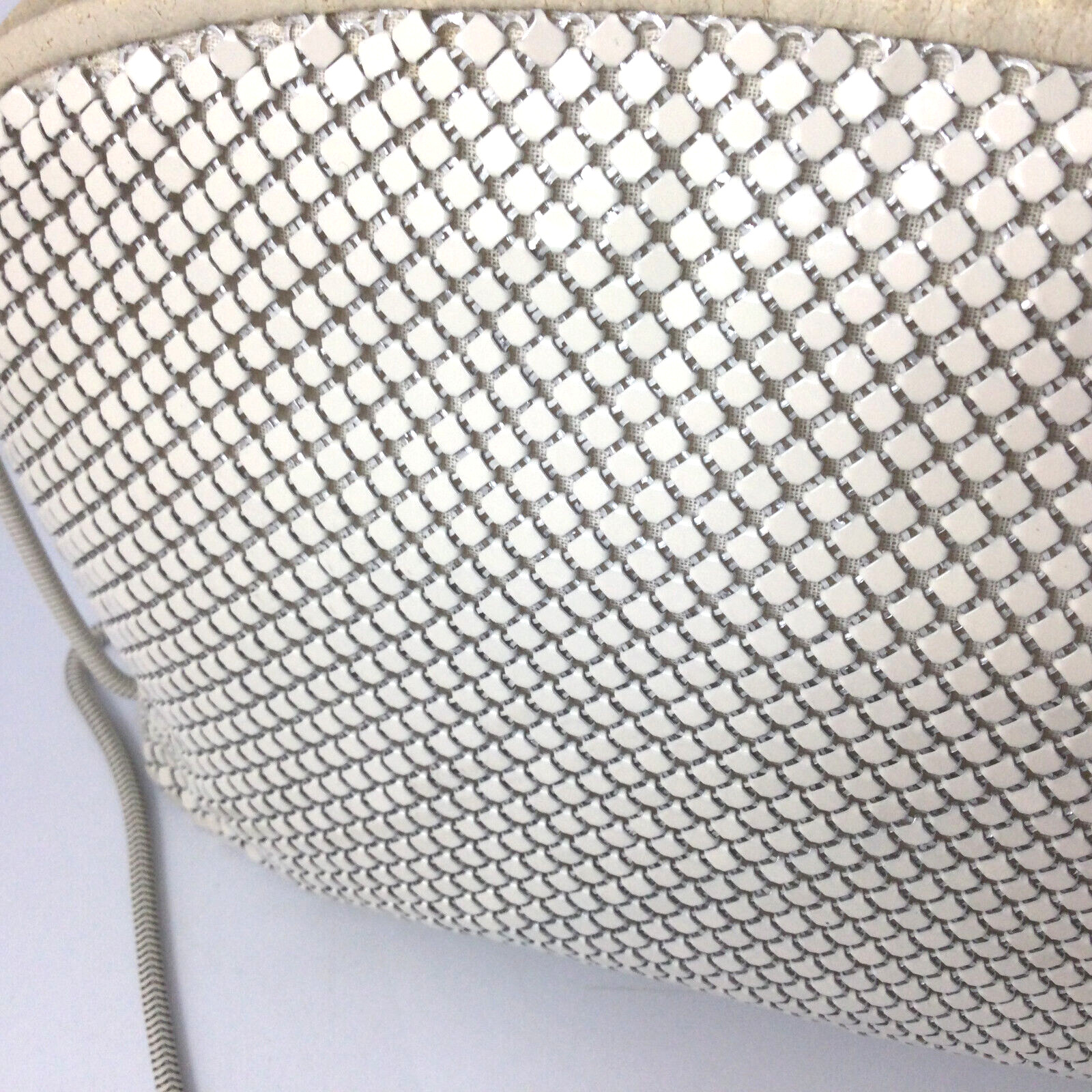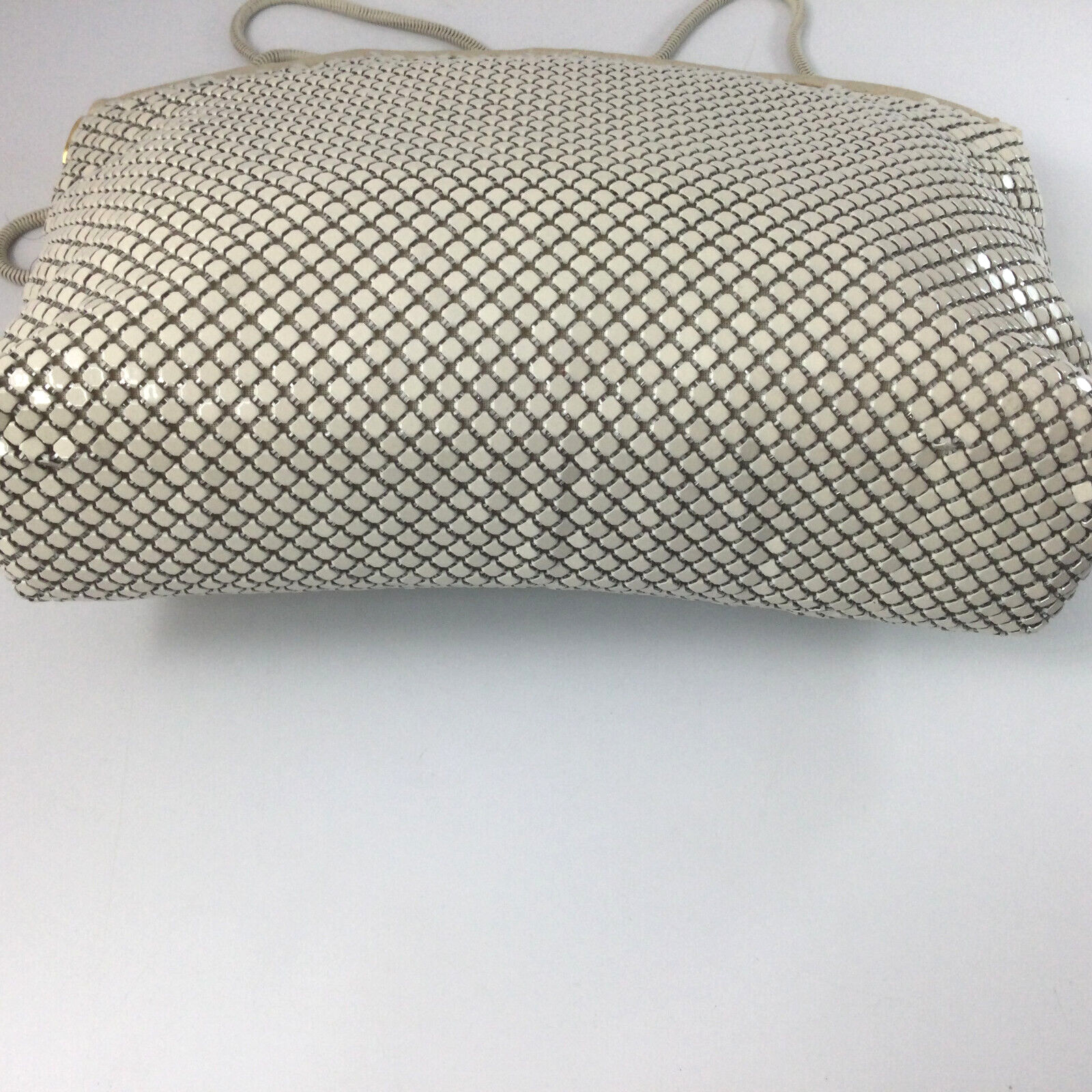 La Regale Metal Mesh Purse Shoulder Bag with Chain Strap White Vintage