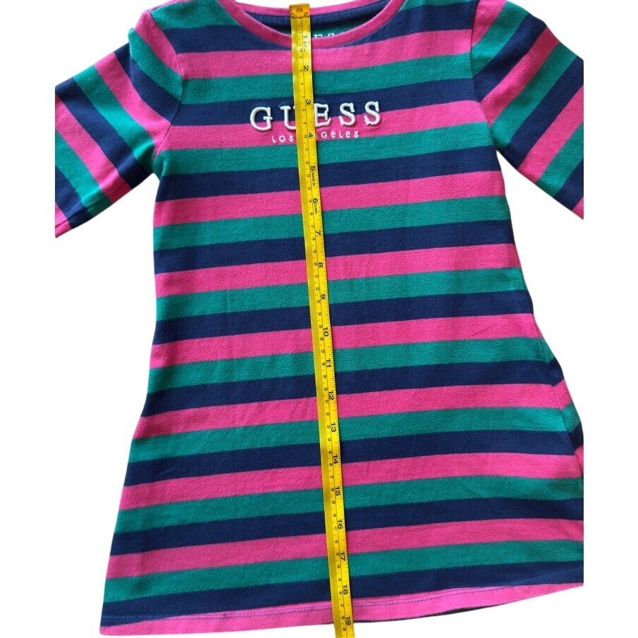 как выглядит VTG Guess Kids Striped Dress Casual Embroidered Logo Pink Green Blue Size 4 Y2K фото