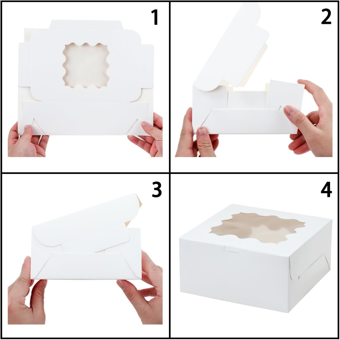 48 PCS 4x4x2.5 White Bakery Boxes with Window for Mini Cakes Cookies Treats