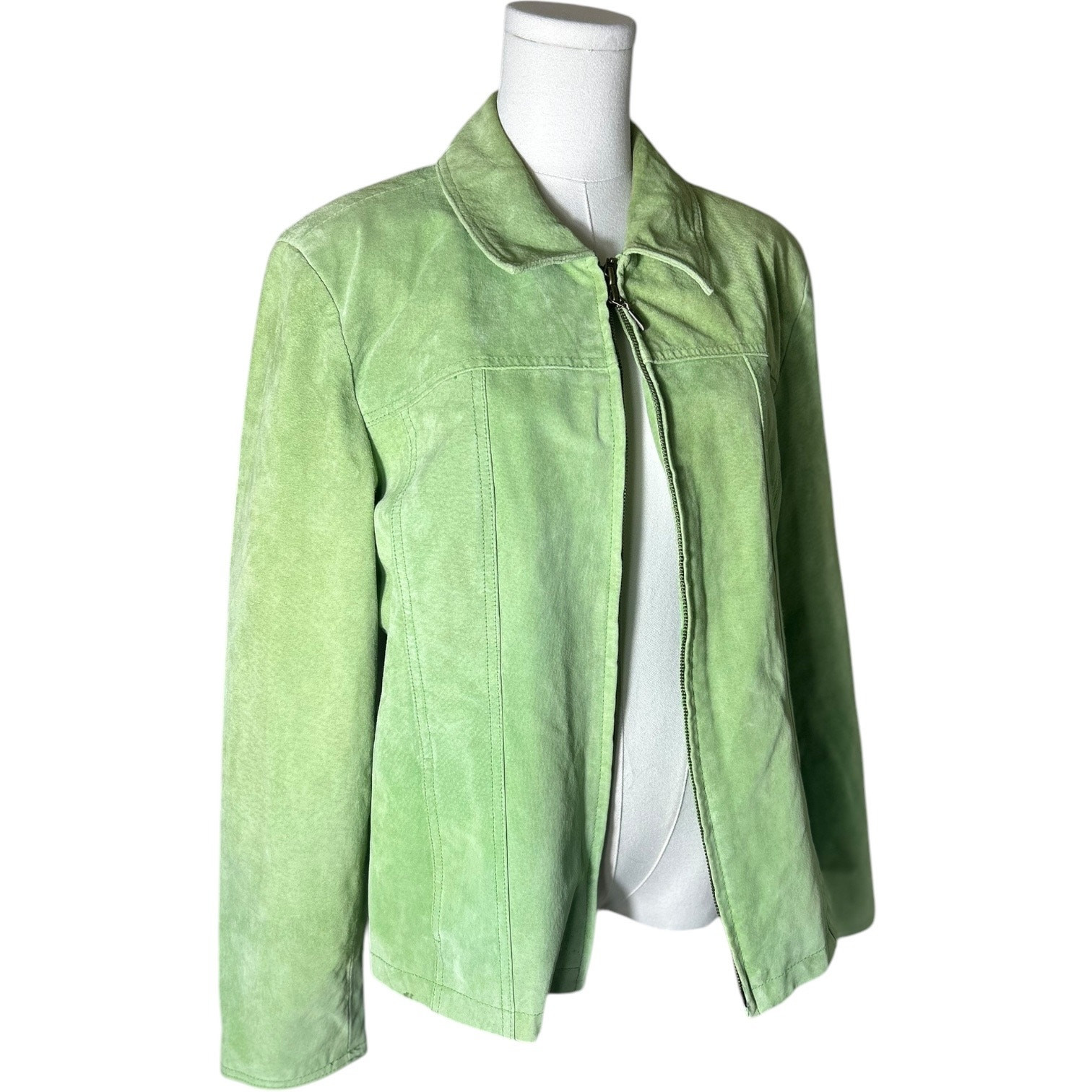 Vintage Lime Green Suede Jacket Coldwater Creek Y2K Boho Retro Outerwear - Large