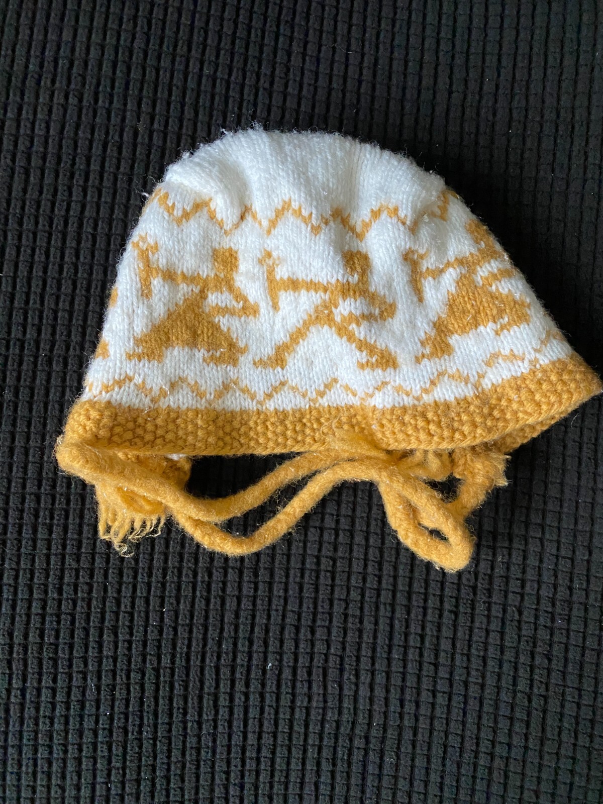 как выглядит Vintage 1950s handknit baby mittens and hat/bonnet фото