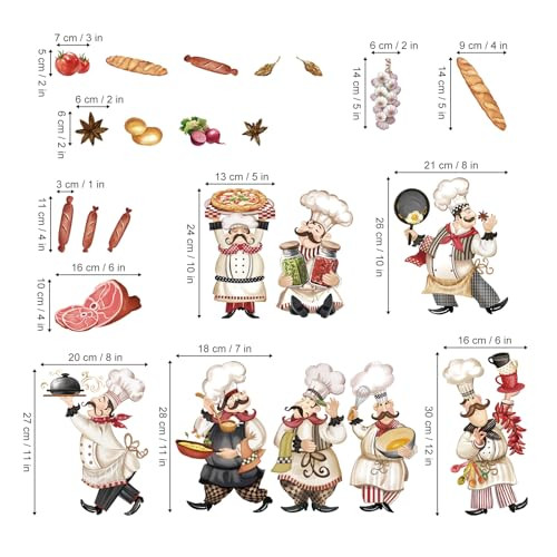 Chef Kitchen Wall Stickers Food Cooking Kitchenware Peel and Stick Wall Art
