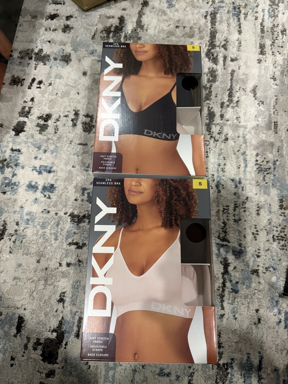 2x2 Pack NEW Designer DKNY Women's Seamless Bra, Size S,blk-sand java Prlpnk