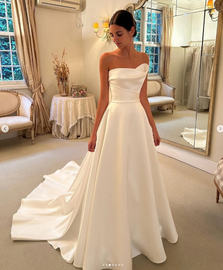 как выглядит Elegant Wedding Dresses Strapless A Line Sweep Train Silk Satin Bridal Gowns фото