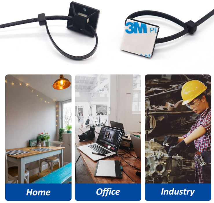 Strong Back-Glue Self Adhesive Cable Zip Tie Mounts Kit - 100 Set Cable Manag...