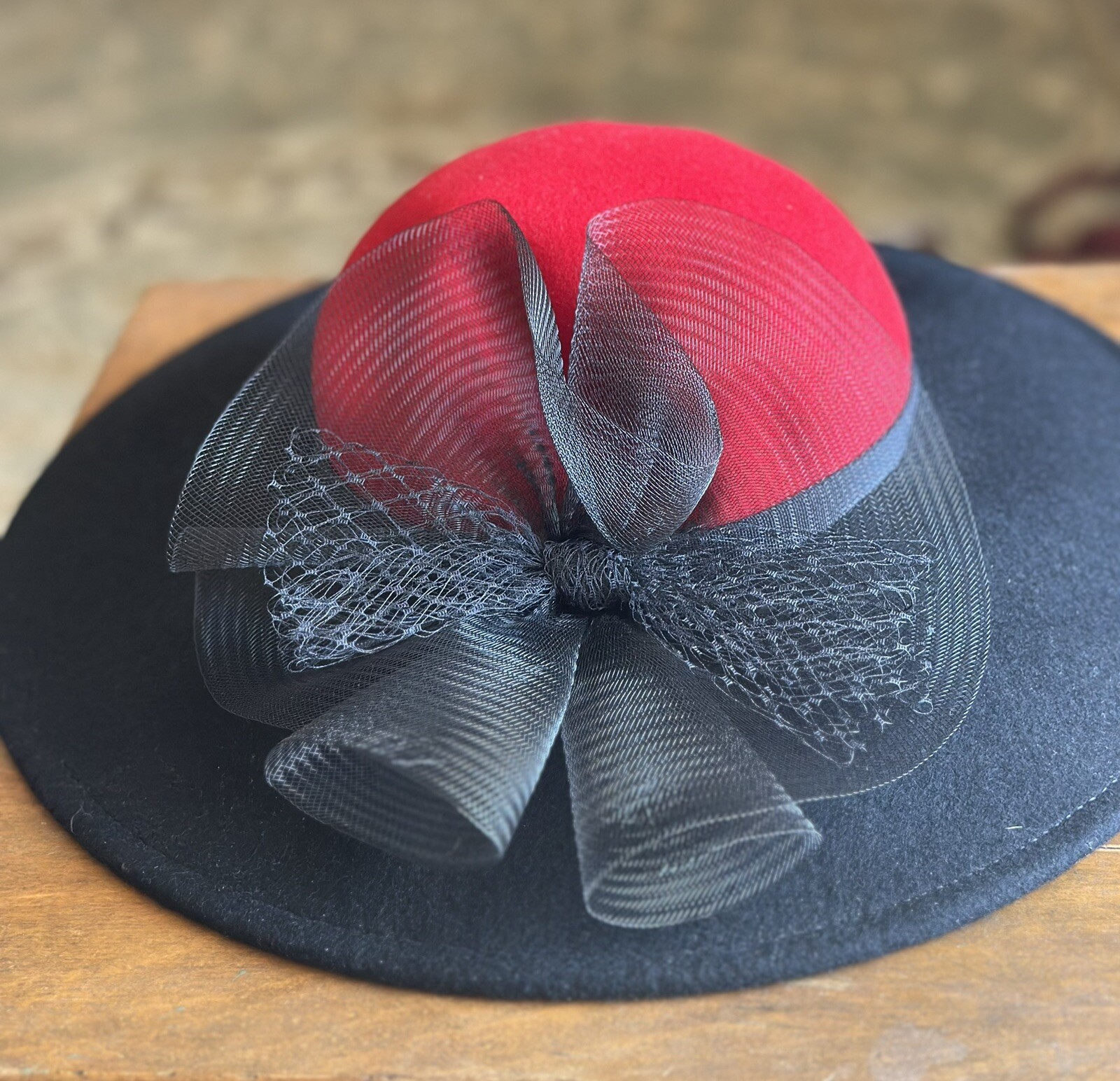 Women's Kentucky Derby Church Dress Hat Wide Brim Black-Red