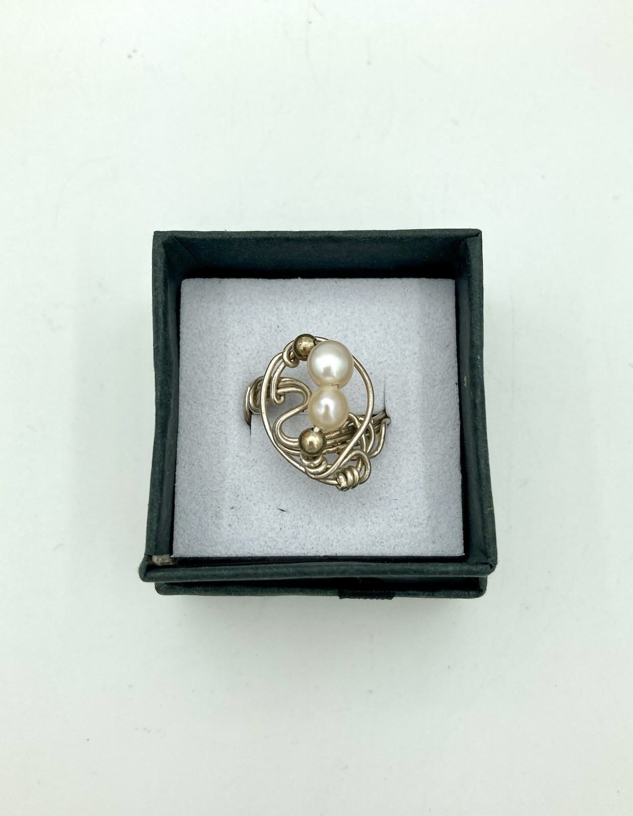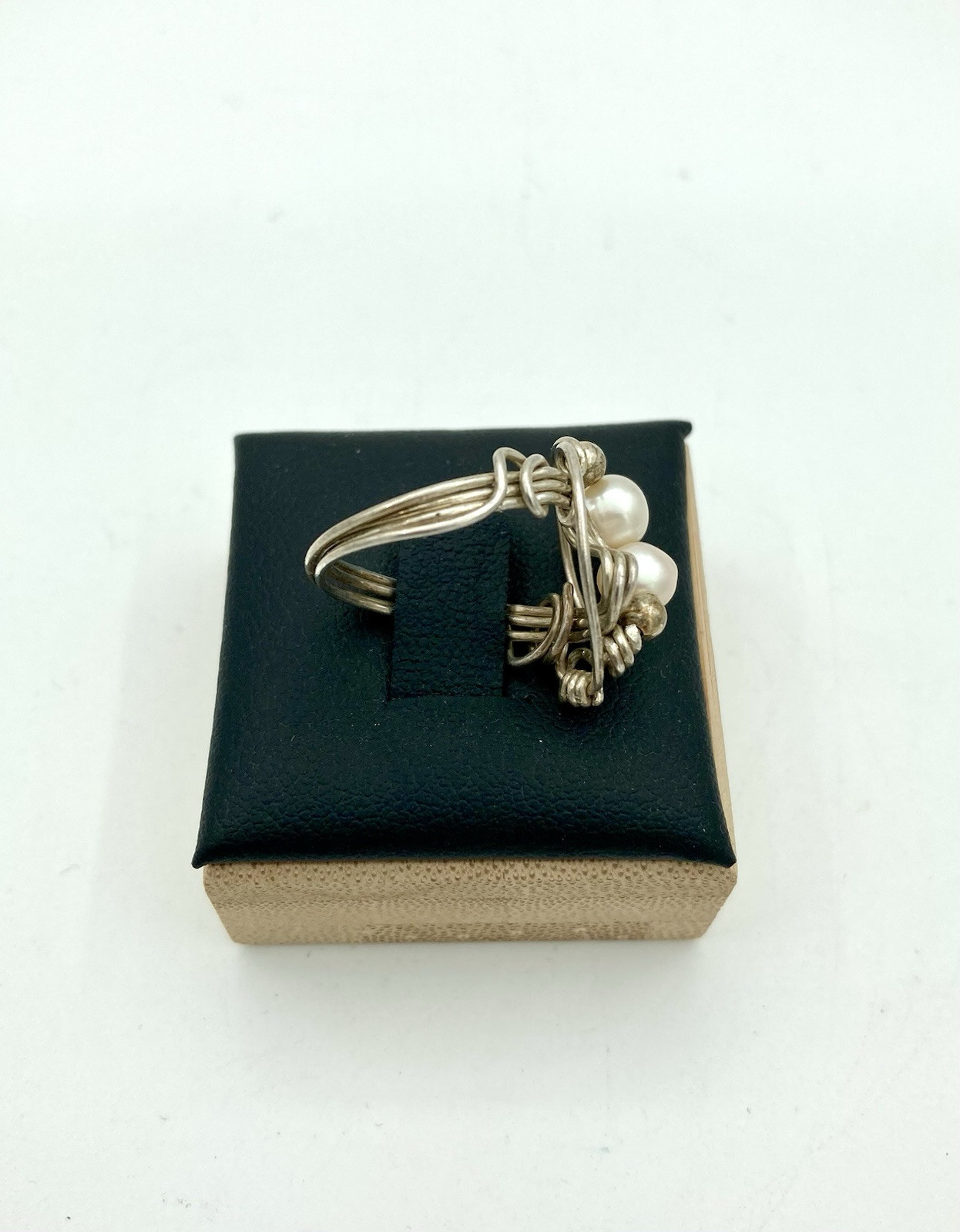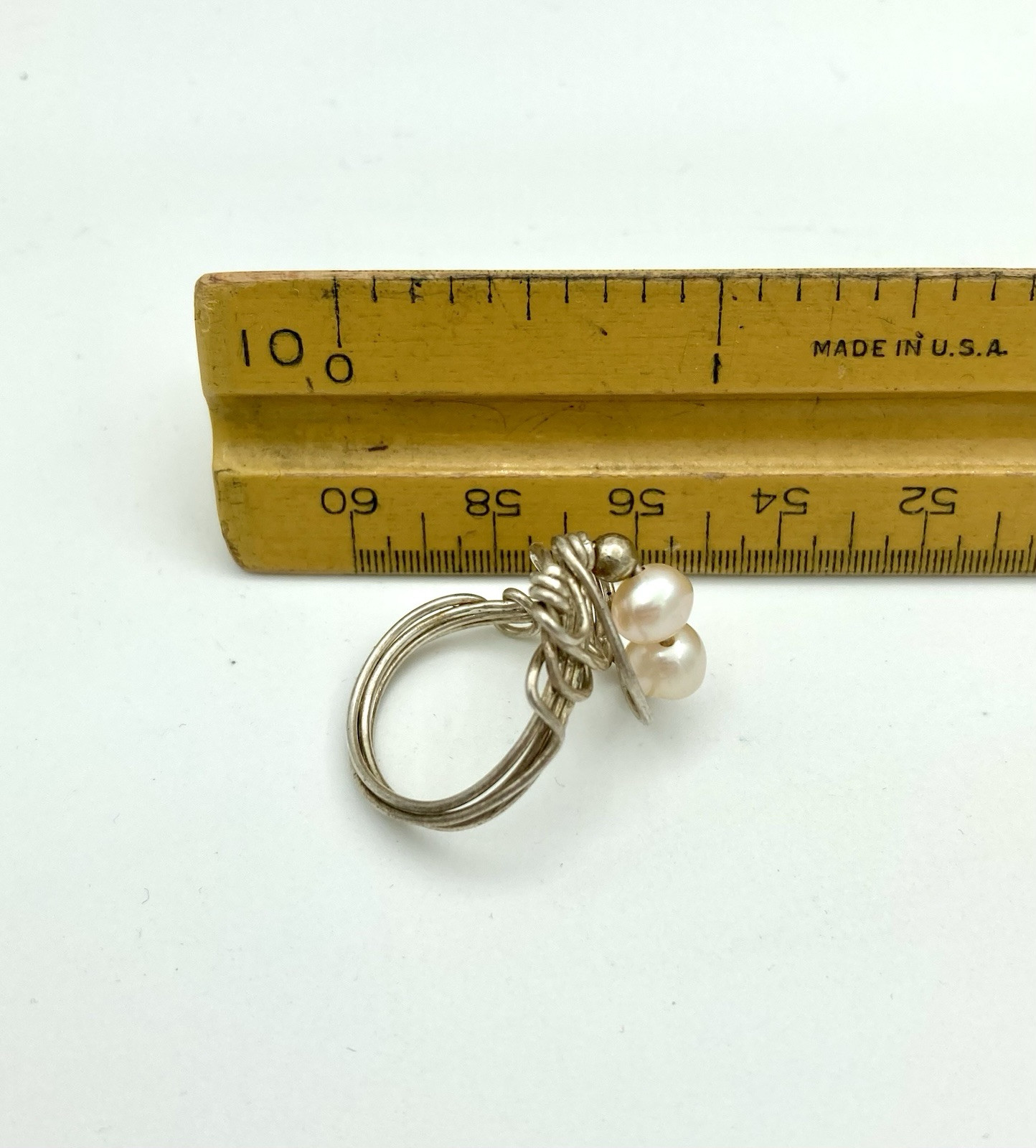 Beautiful Handmade Artistic 925 Sterling Silver Wire Ring - Real Pearls - Size 7