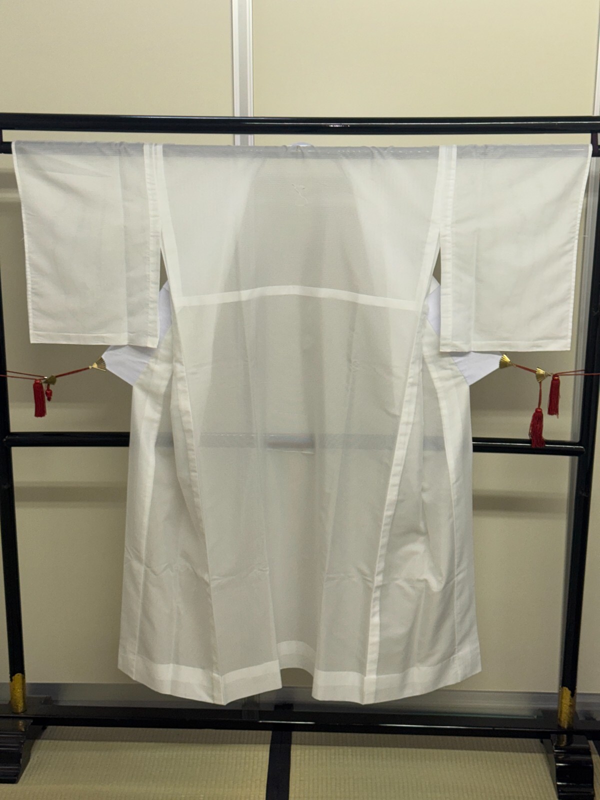 как выглядит Japanese Vintage Kimono Polyester White Juban Tradition Seethrough Height 55.1in фото