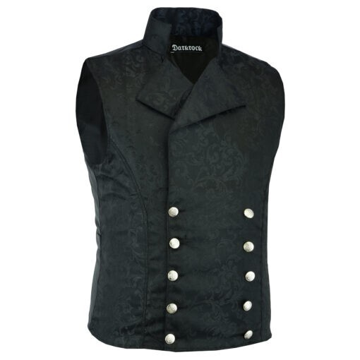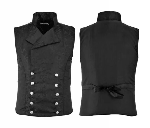 Mens Steampunk Double Breasted Waistcoat Black Vest Gothic Western Reenactment