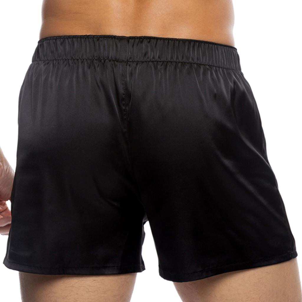 как выглядит Satin Boxer Shorts Elastic Waistband Button Fly Underwear Sleepwear Black LI818 фото