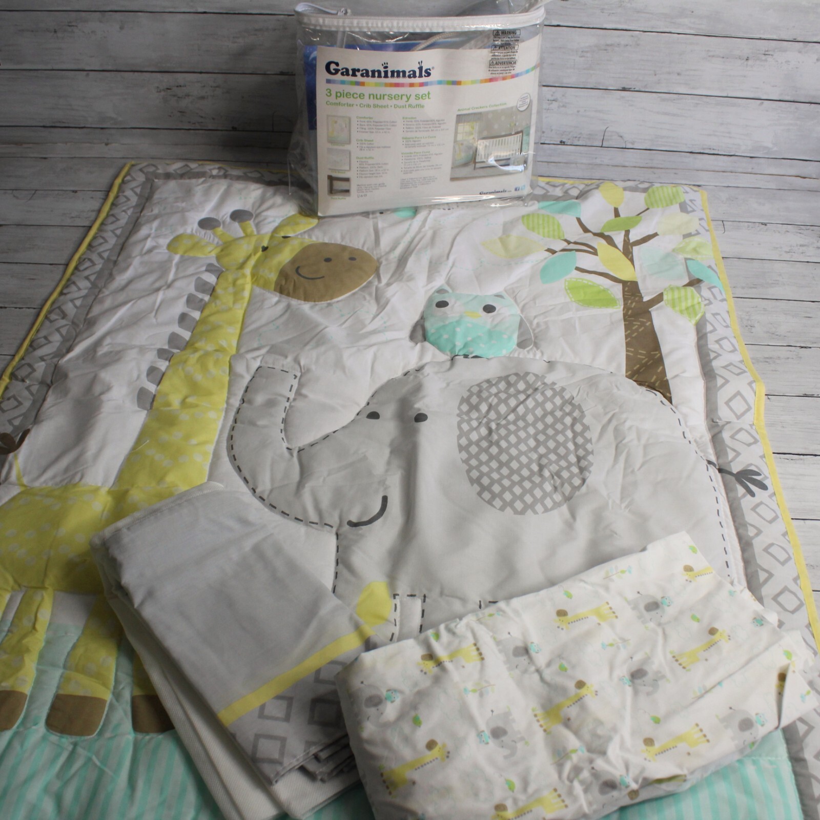 Garanimals Nursery Set Crib Comforter Sheet Giraffe Elephant Unisex Baby