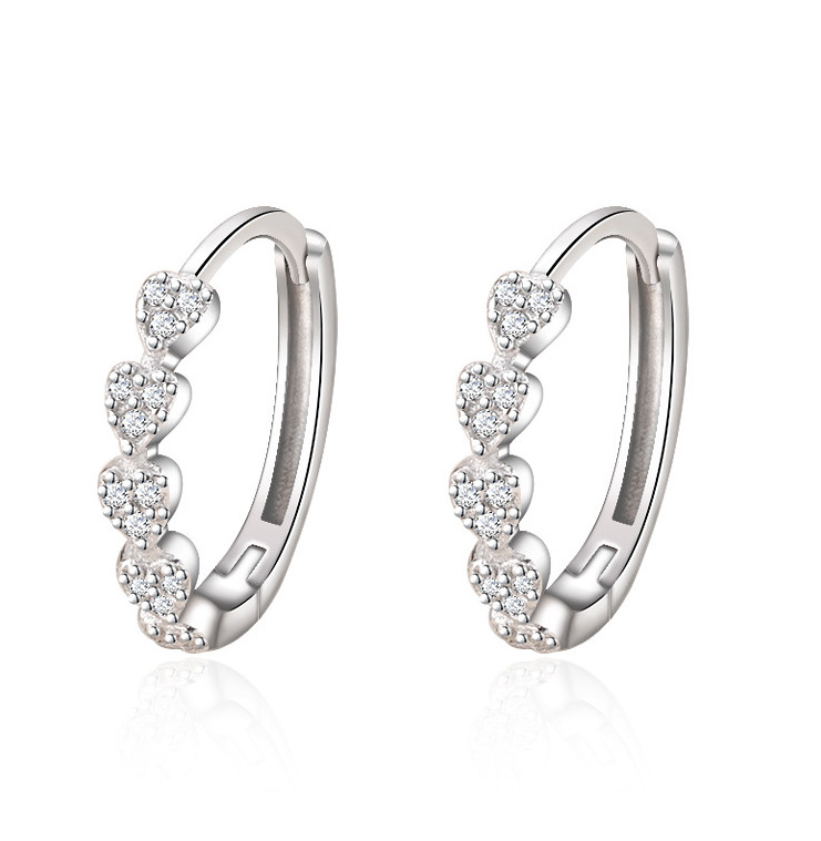925 Sterling Silver Heart CZ Huggie Hoop Piercing Earrings 14mm Women Girl TH1