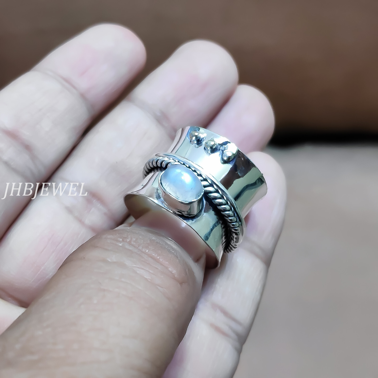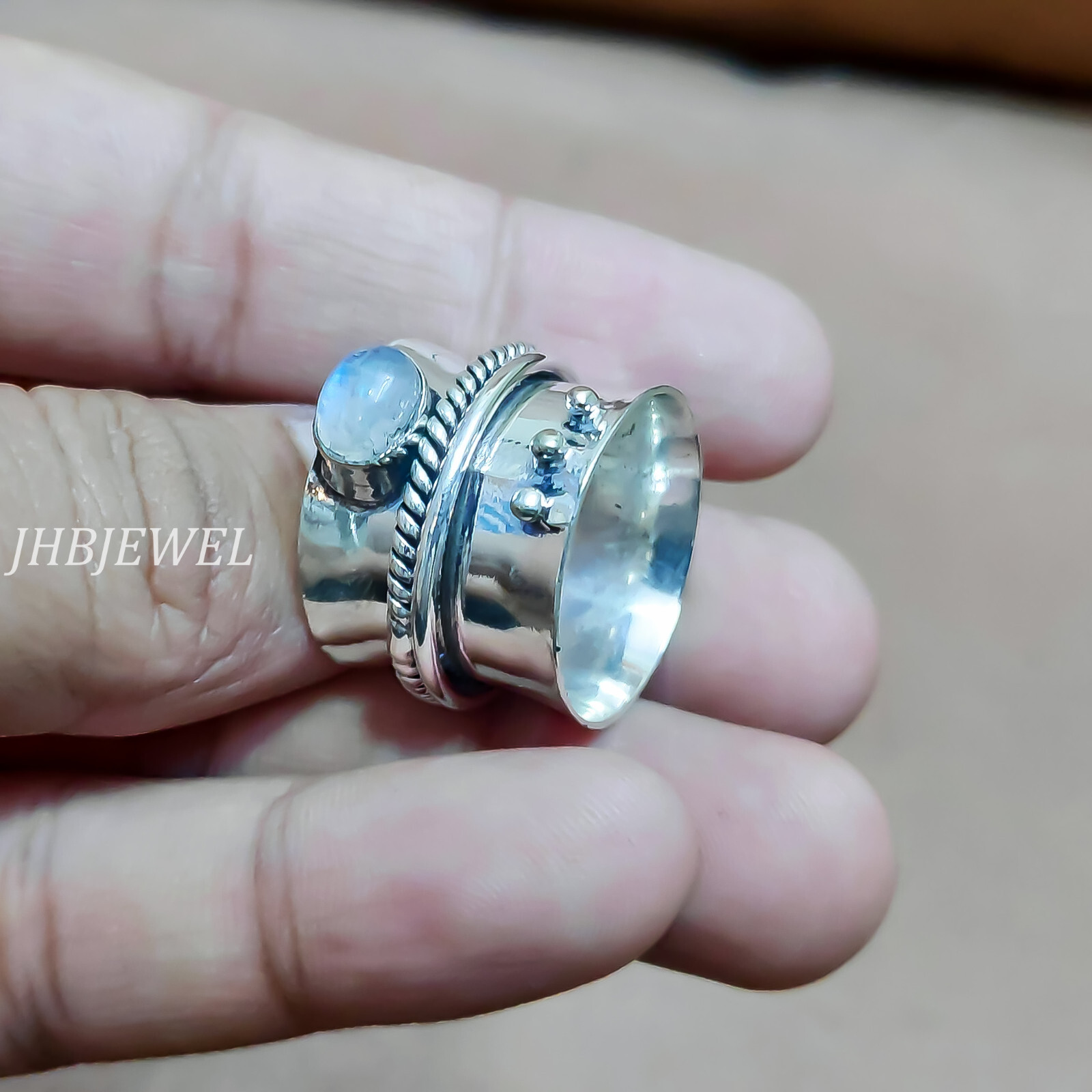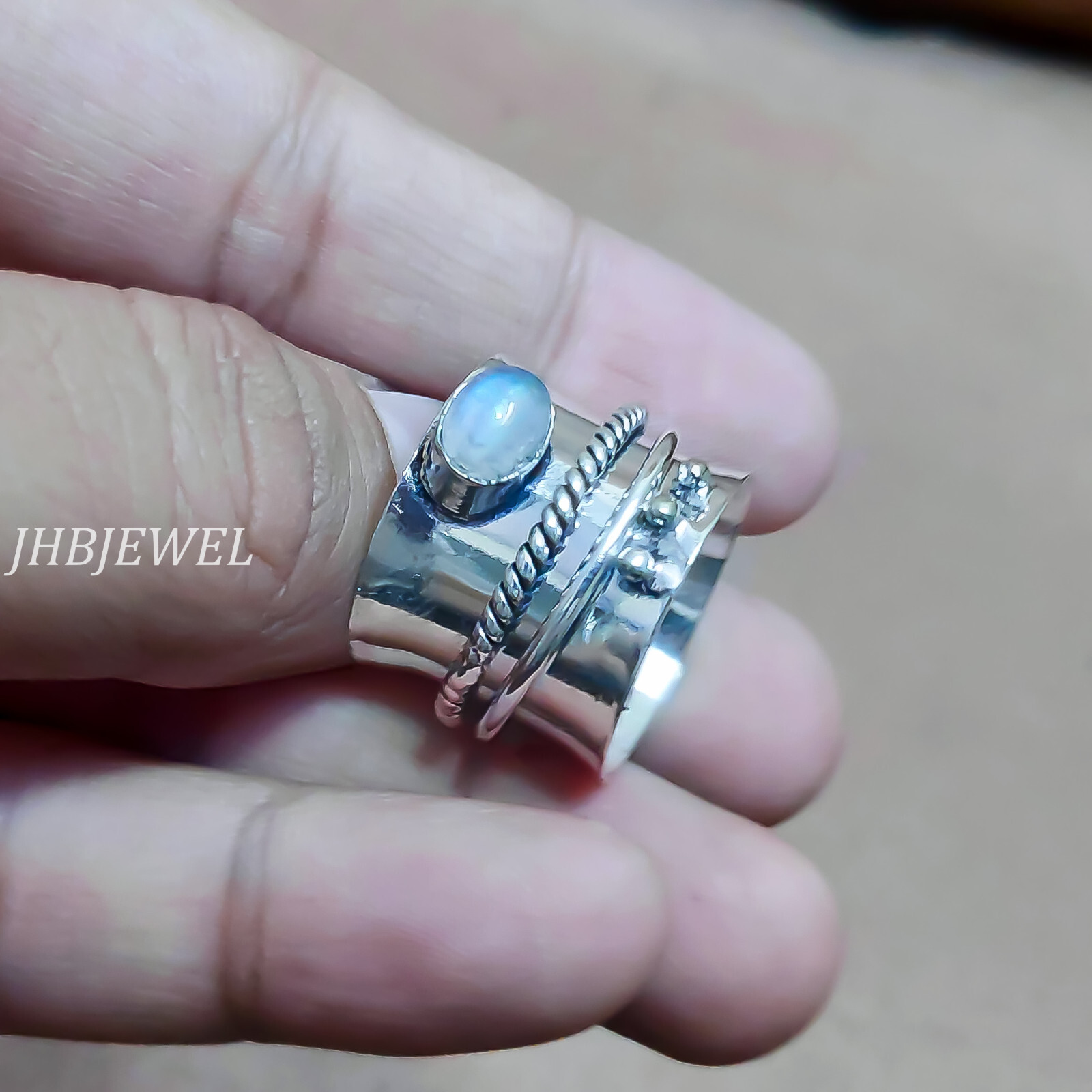 как выглядит Moonstone Oval Gemstone 925 Sterling Silver Anxiety Spinner Ring For Anyone Gift фото