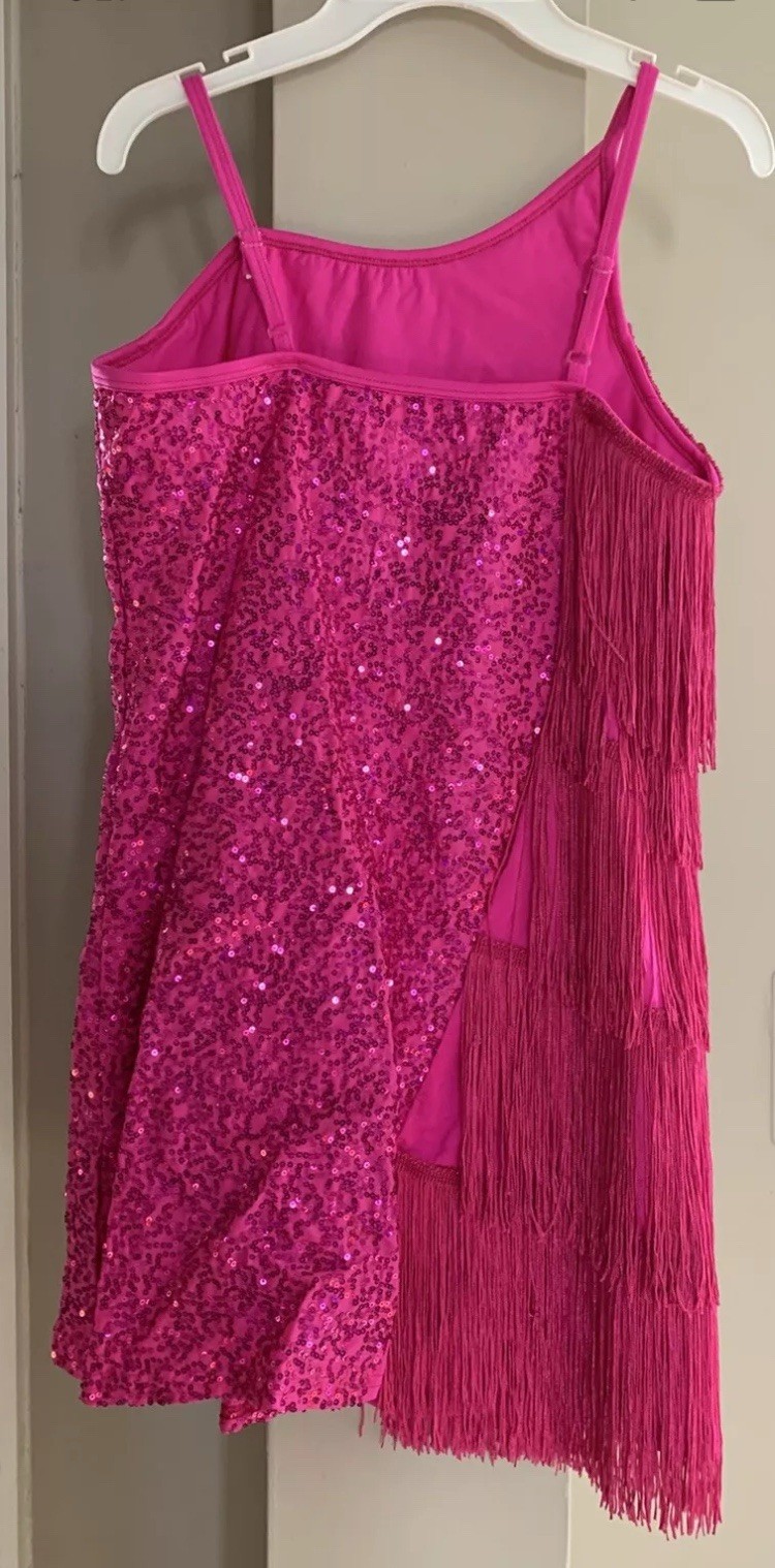 как выглядит Hot Pink Adult Large Jazz Tap Dance Costume Fringe Sequin Laylas L2883 Wore Once фото