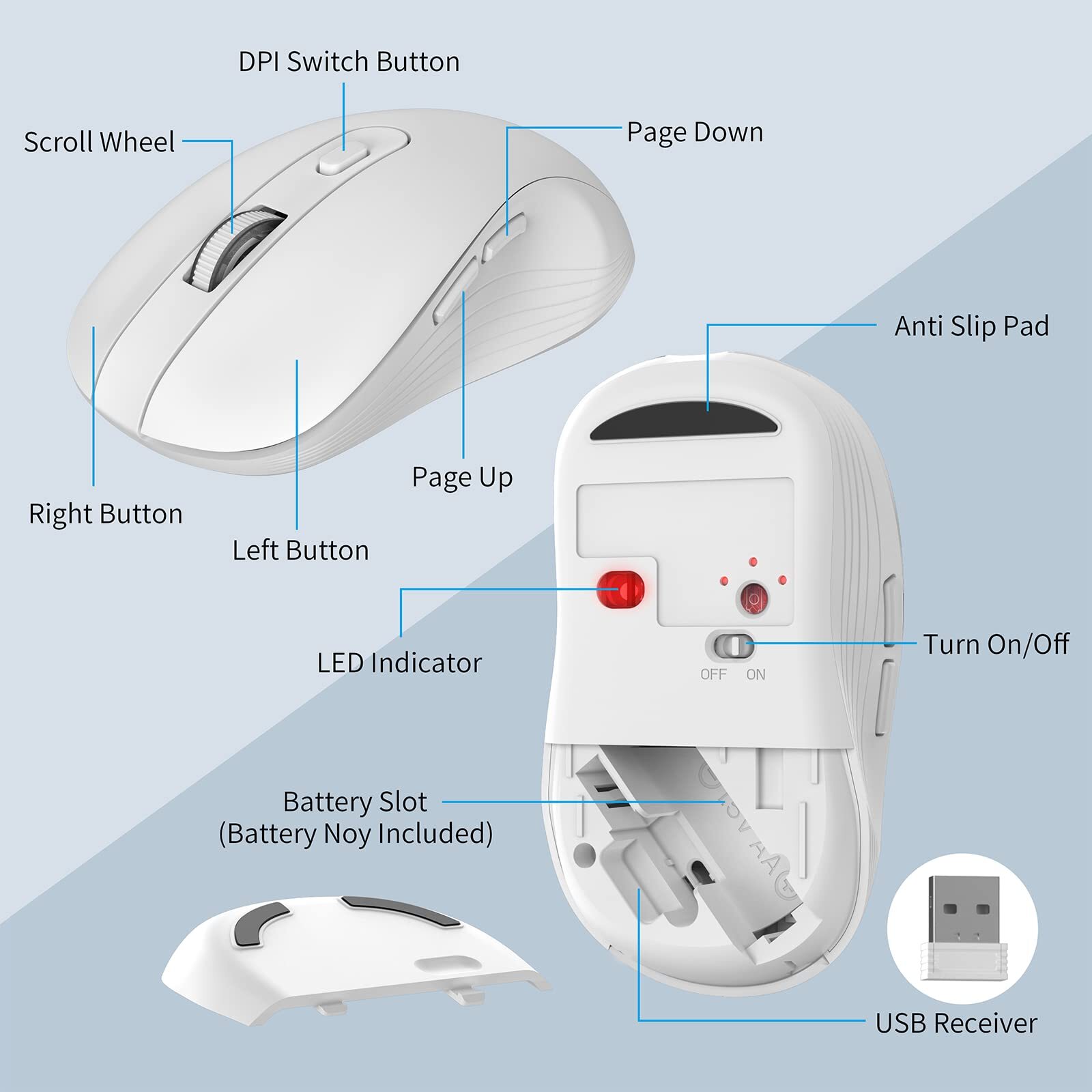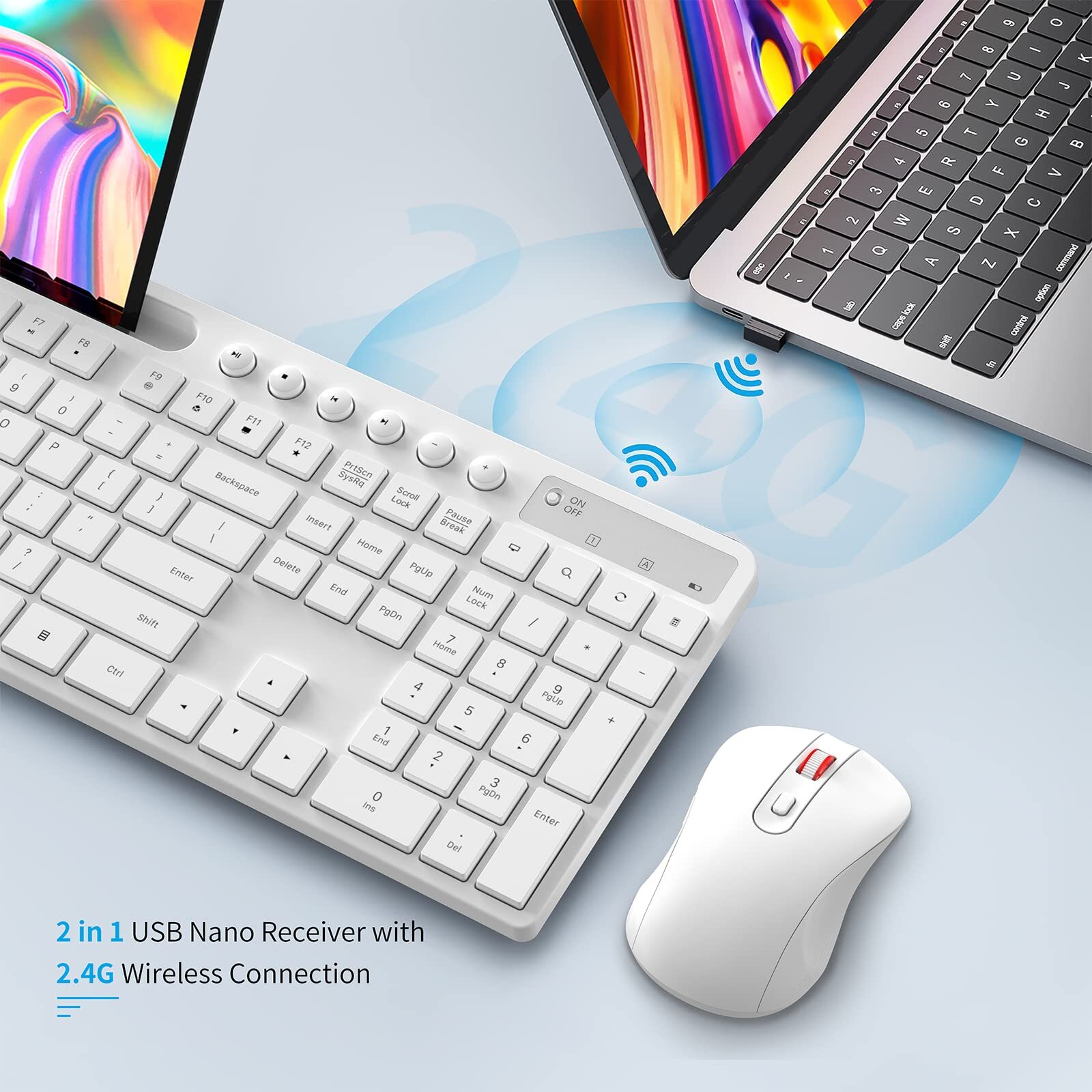 Wireless Keyboard Mouse Combo 2.4G Ergonomic White Phone Tablet Holder Laptop