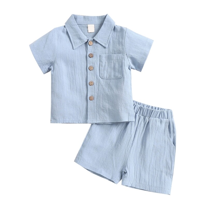 2Pcs Little Boys Outfit Toddler Solid Color Single-breasted Shirt Elastic Waist