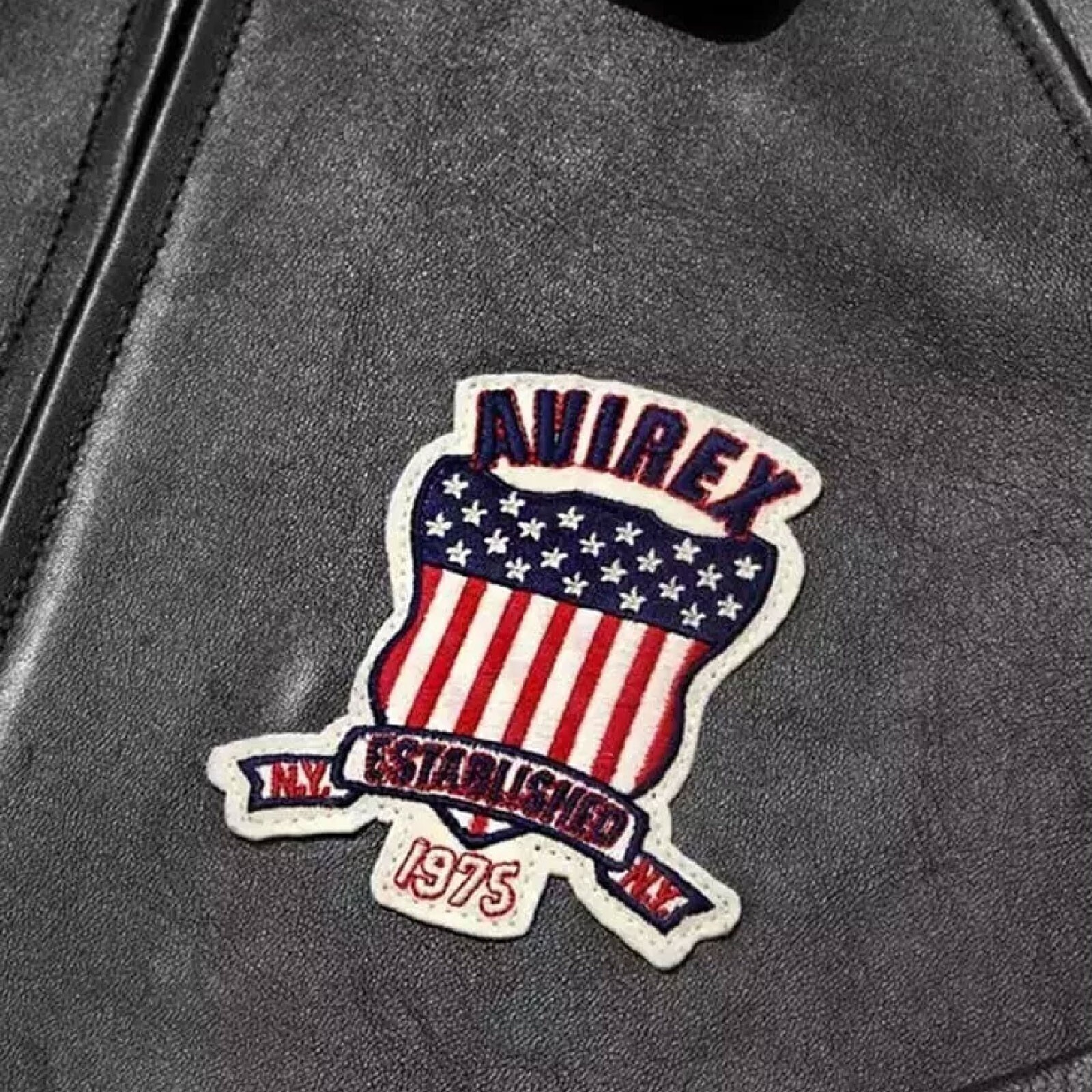 как выглядит Mens Black Avirex American Bomber Genuine Cowhide Leather Flight Style Jacket фото