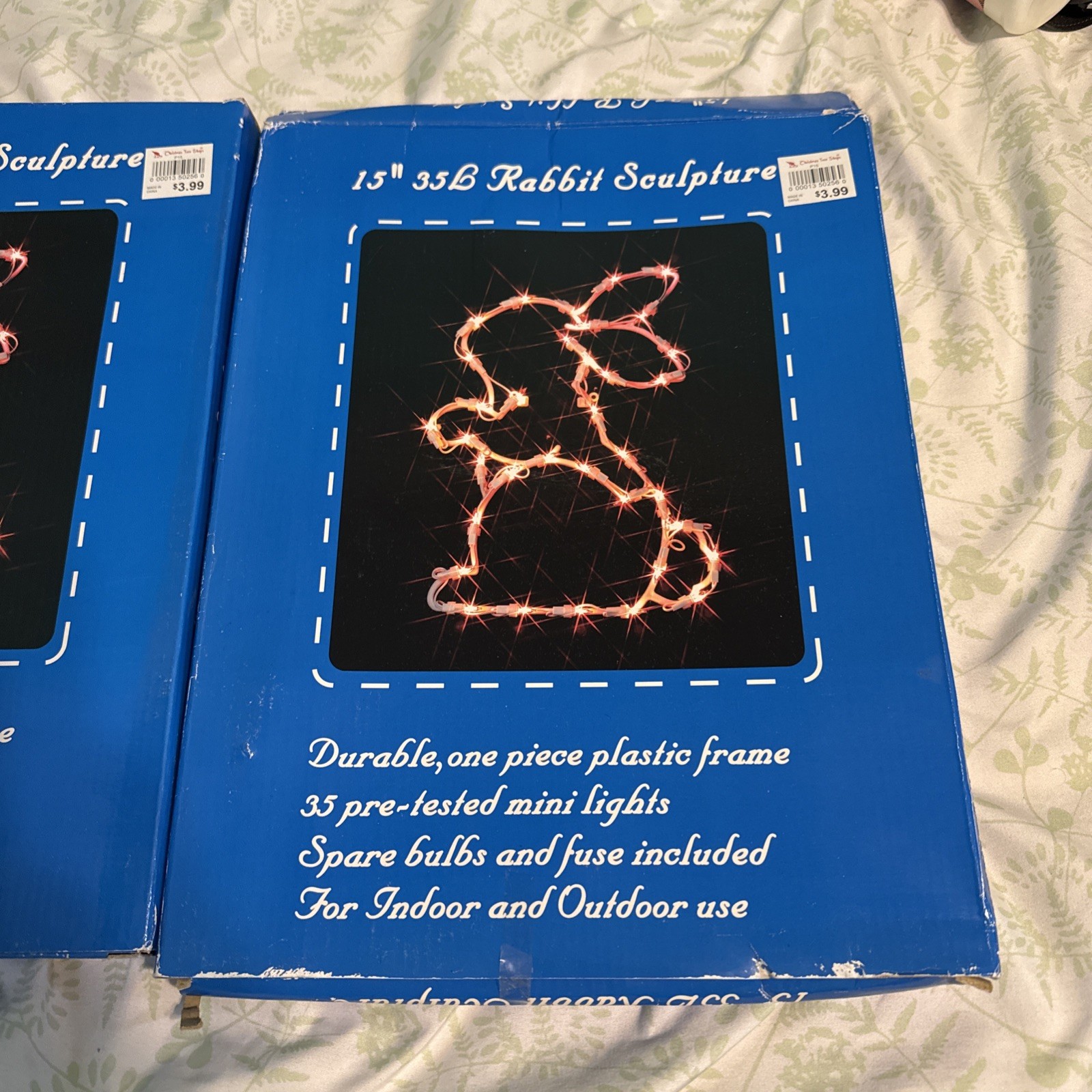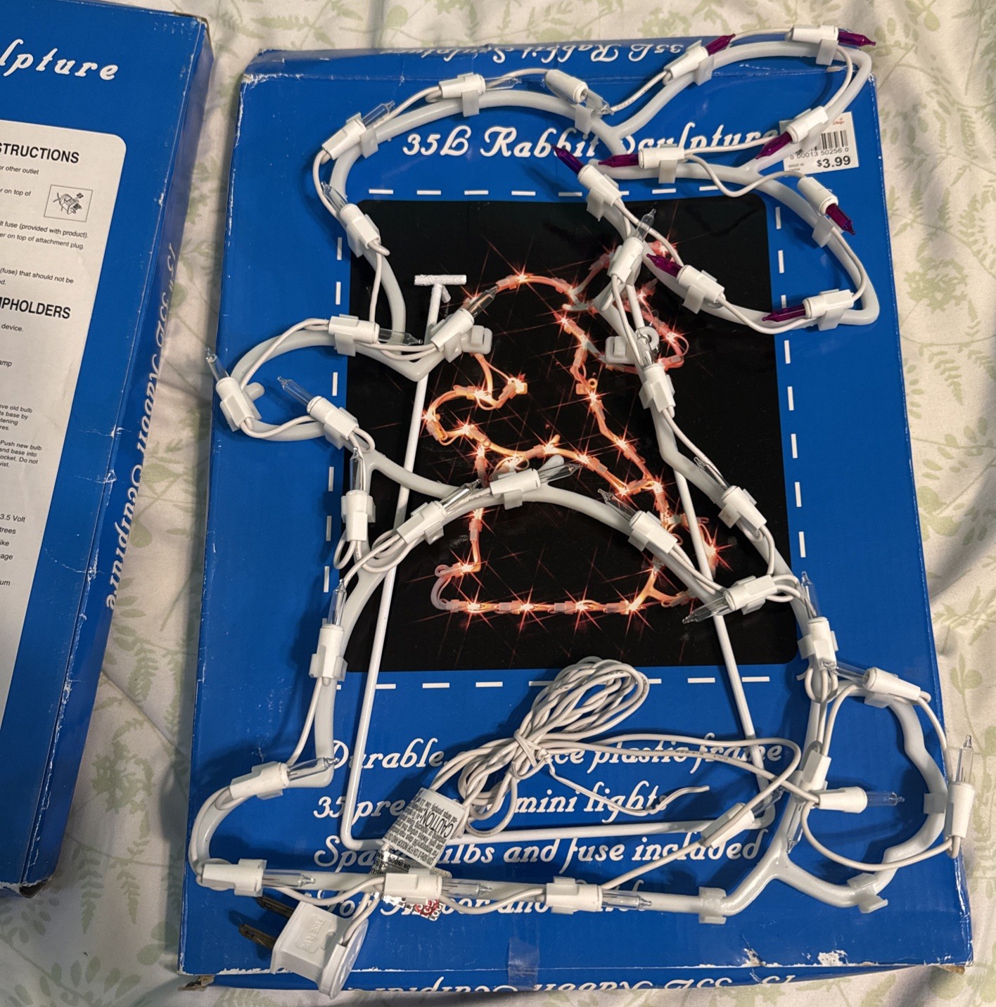 2-15 Bunny Light Sculpture Plastic Frame Indoor/Outdoor Easter Decoration EUC