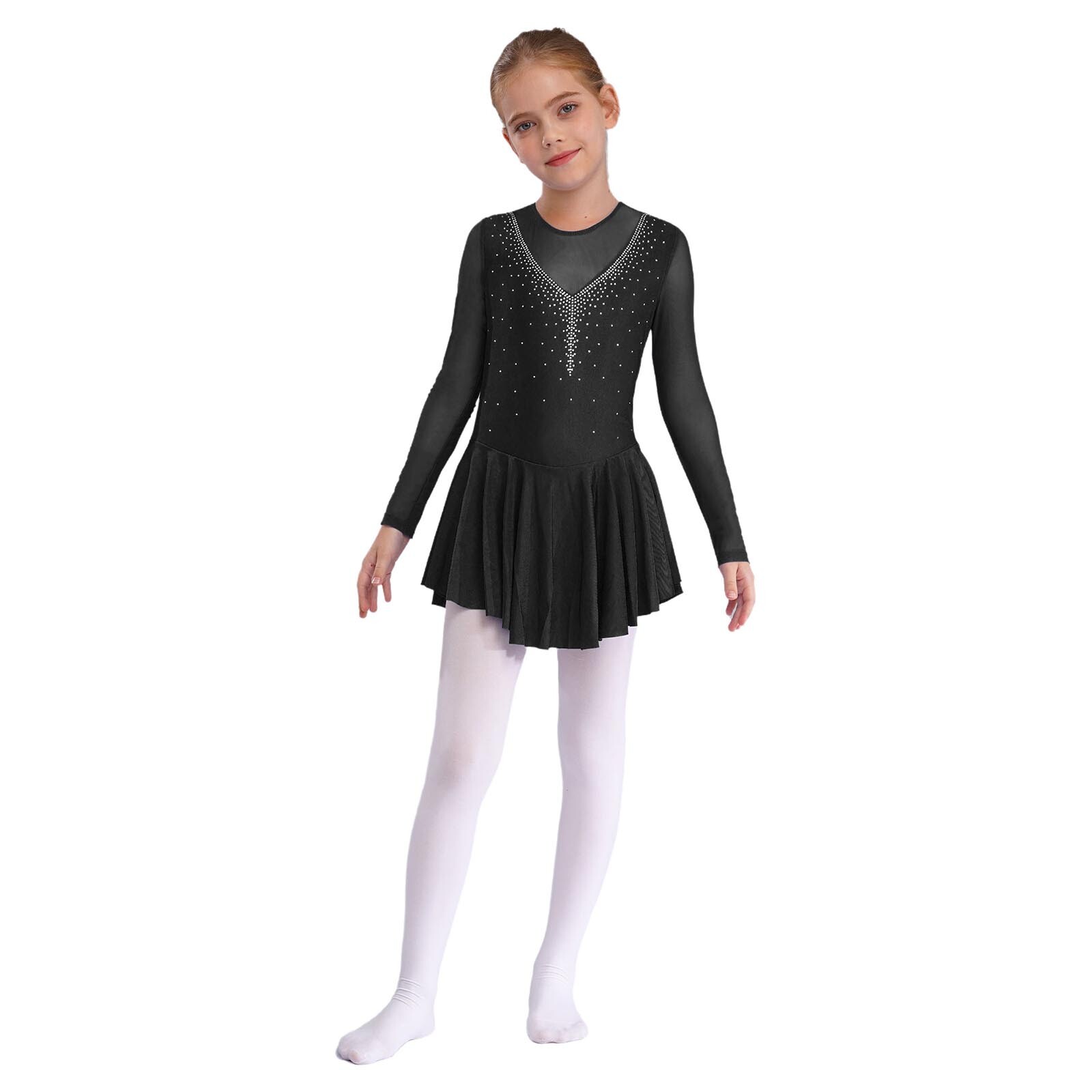 Kids Girls Ballet Dance Dress Lyrical Latin Skating Long Sleeve Sequin Leotard