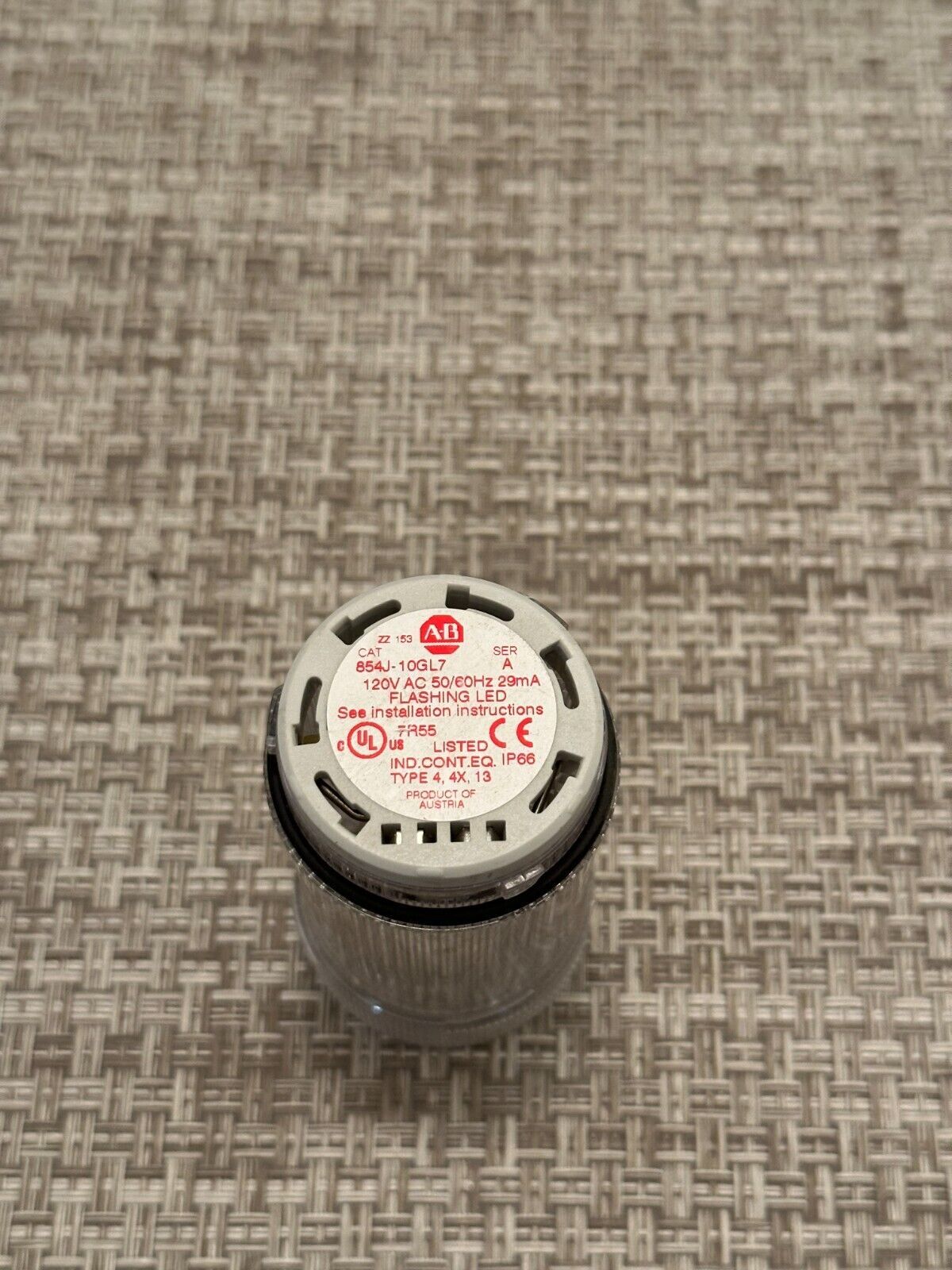 New Allen Bradley 854J-10TL7 Clear Steady LED Stack Light 120V AC 40mm